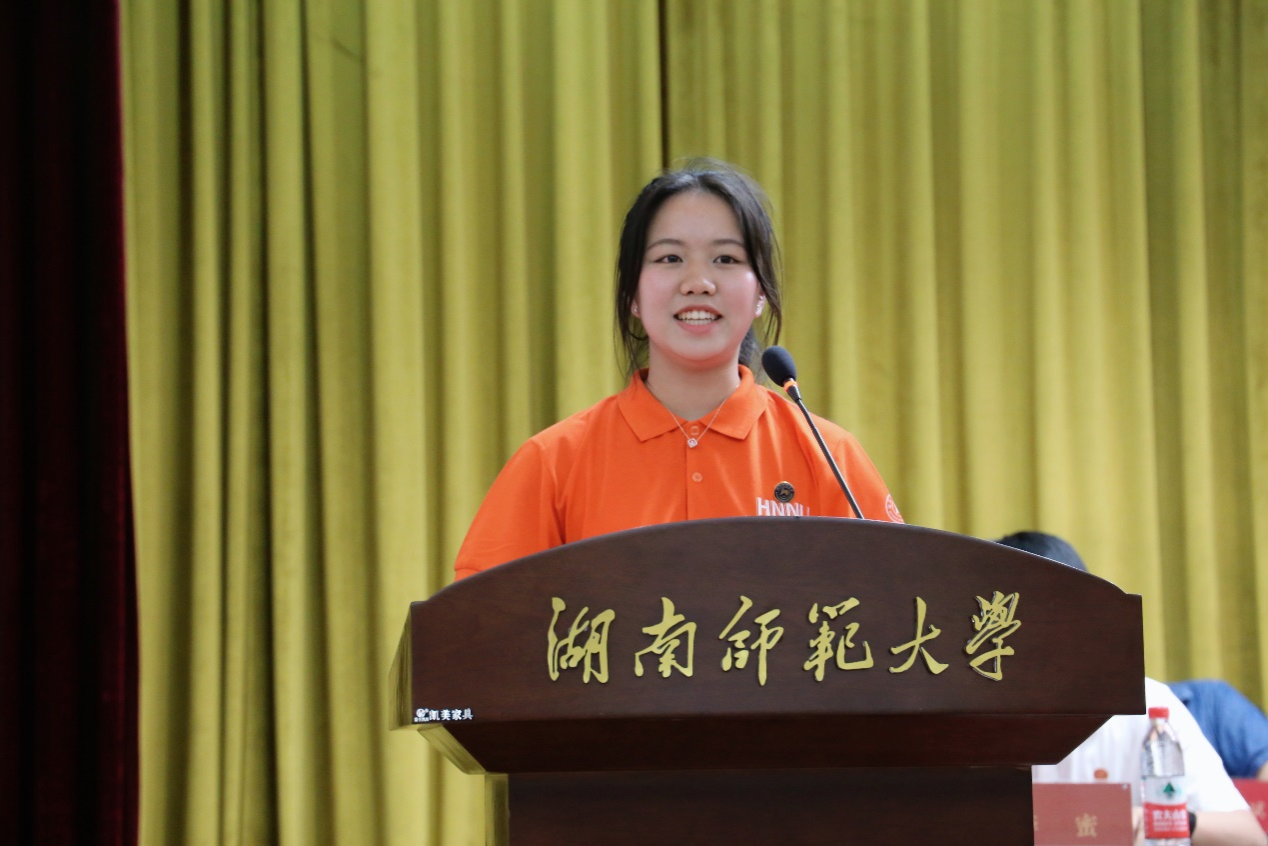 学生代表、2021级英语专业本科生刘江凌以《在青春赛道上奋力奔跑》为题,希望同学们做学无止境的求知者、做全面发展的组行者,努力学习、积极参与实践活动,在新环境中不断探索、不断成长,在青春的赛道上跑出当代青年的风采。