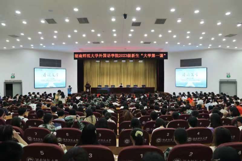 9月26日晚,我校“潇湘学者”特聘教授陈众议以《漫说文学》为题为2023级本科新生讲授“大学第一课”。永利集团官网院长曾艳钰、党委副书记李蜜、副院长刘白到场参会。讲座由学院副院长蒋莉华主持。