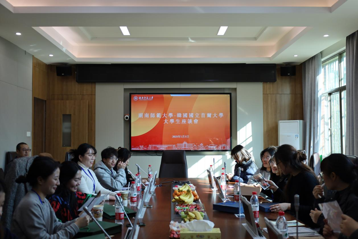 1月5日,中韩师生返程长沙后,在永利集团3044欢迎光临中和楼举行了一场学术文化交流座谈会,主题为“湖湘文化和东亚文明”。湖南师大和首尔大学的学生分别围绕“湖湘文化特征”和“湖南地区考察所见当代中国”展开了深入的交流和讨论。