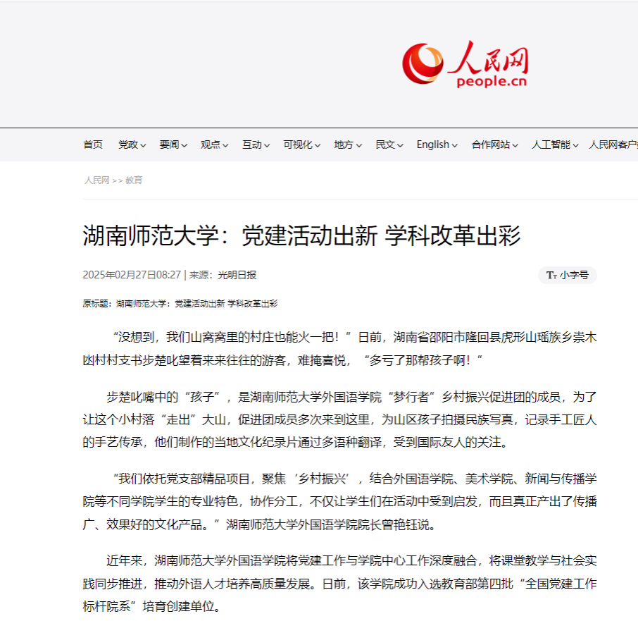 (通讯员 王昭春)连日来,光明日报、人民网等中央媒体,以《永利集团3044欢迎光临:党建活动出新,学科改革出彩》为题对学院在聚焦“乡村振兴”,引导青年学生投身乡村教育;结合专业特色开展与社会现实相结合的“大思政课”;以项目拓展推动支部活动品牌化,以党群带动群团建设协同化;党建工作创新等方面的工作开展情况进行了深度报道。