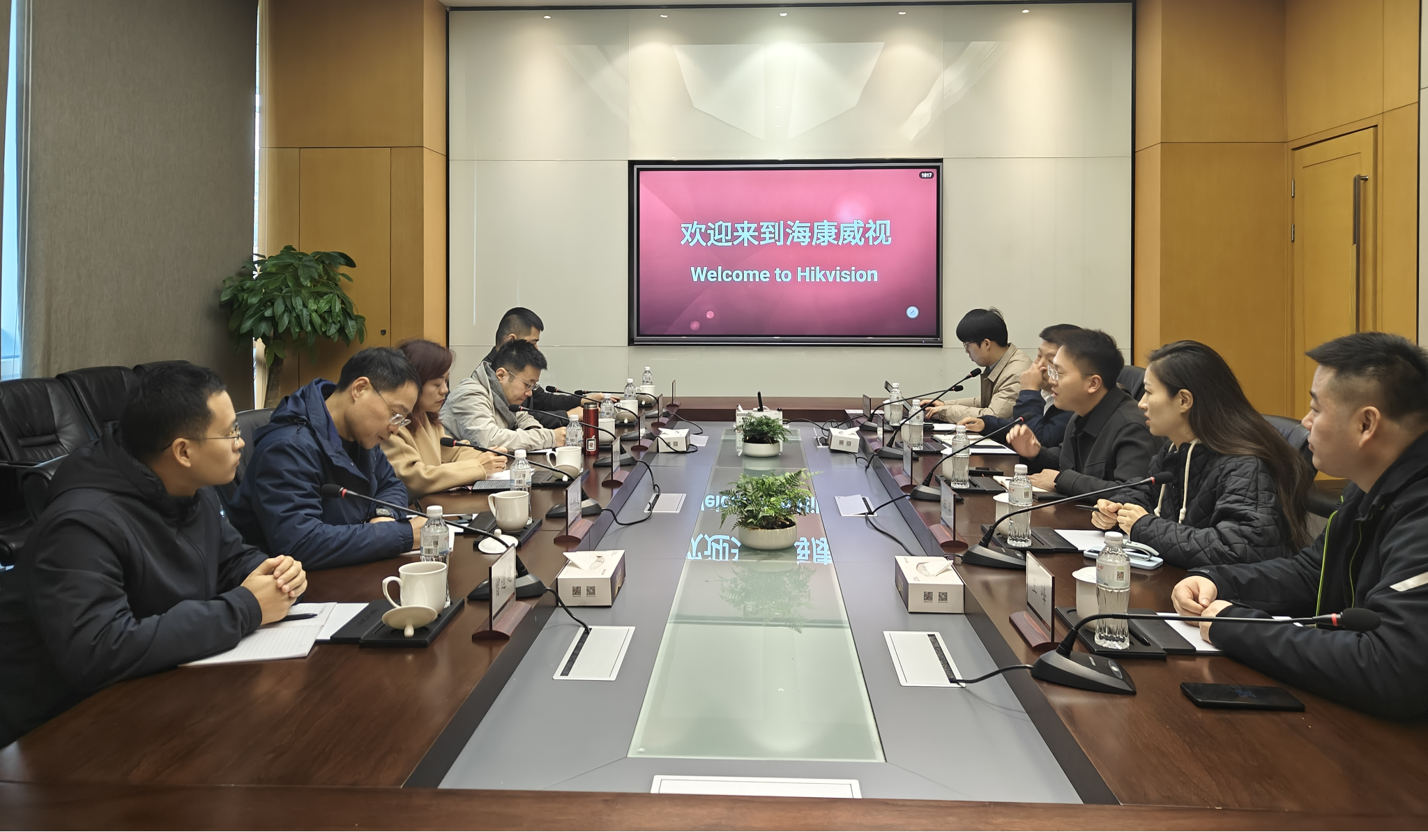 在杭州海康威视总部,调研团一行参观了OT产品展示区,并同海康教育教学业务部总经理刘绍博、教育教学业务部高教行业经理赵帅范等就物联感知、人工智能、大数据赋能外语教育教学、精准分析解读传播受众等方面进行了详细了解和深入沟通。双方希望以此次调研交流为契机,进一步深化多领域、多形式的科学研究与人才培养领域合作,实现优势互补、合作共赢。