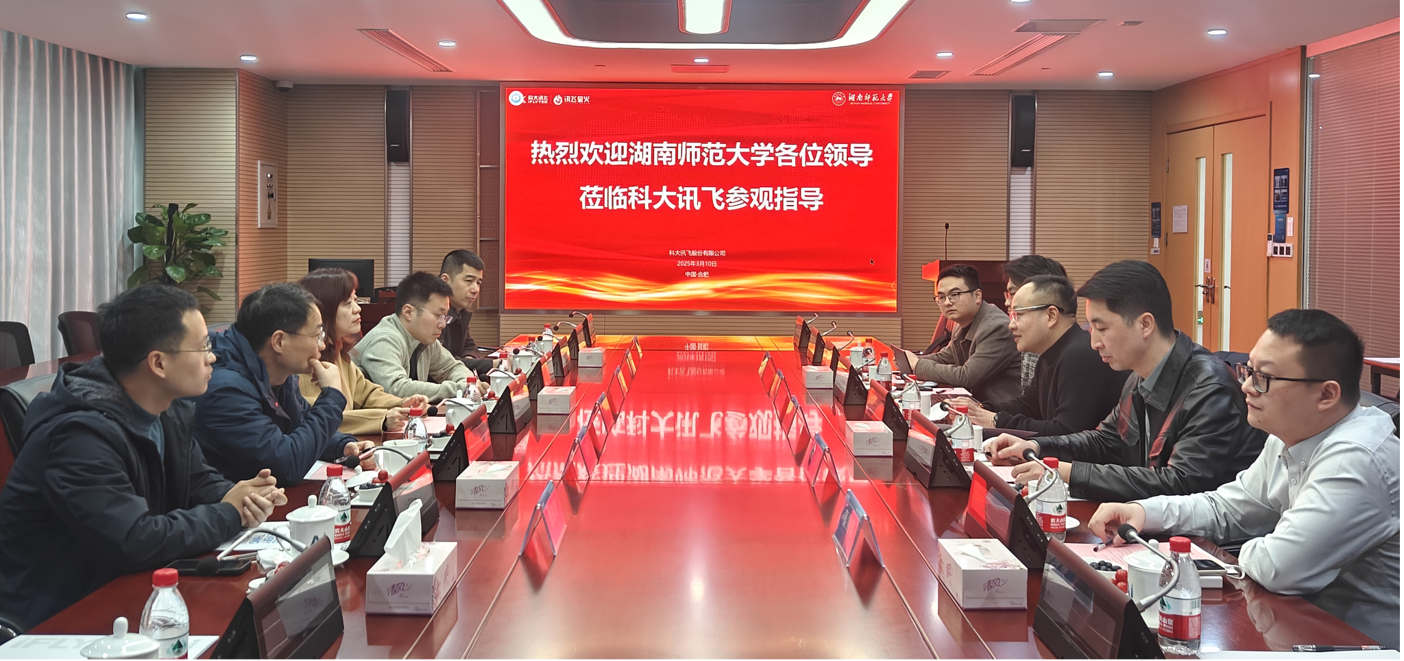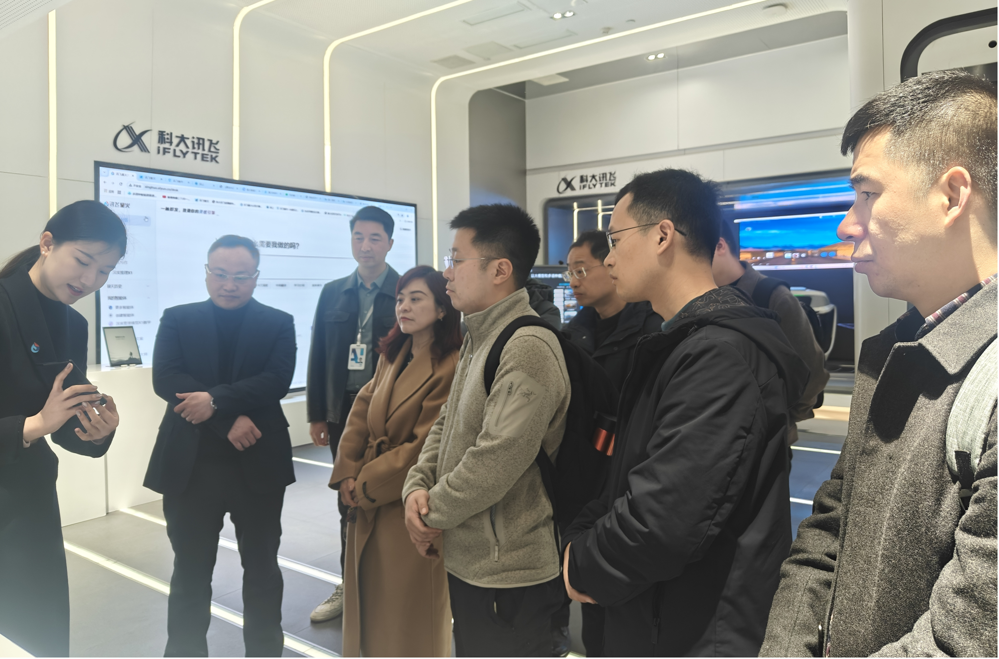 在合肥科大讯飞总部,调研团一行察看、了解了语音技术应用、智能语音、星火认知大模型等研发应用成果展示,并与讯飞高教事业部副总裁胡江院、高教事业部市场总监甘隽、高教研究院高级研究员朱冯睿等进行交流。其间,双方重点探讨了智能语音、自然语言理解等技术赋能精准国际传播、翻译传播、师范生教育教学人才培养的可行性,并希望在校企战略合作的框架下,围绕“两个融合”等现实命题战略机遇,加快合作研发和社会服务的层级,推动结出更加丰硕的成果。