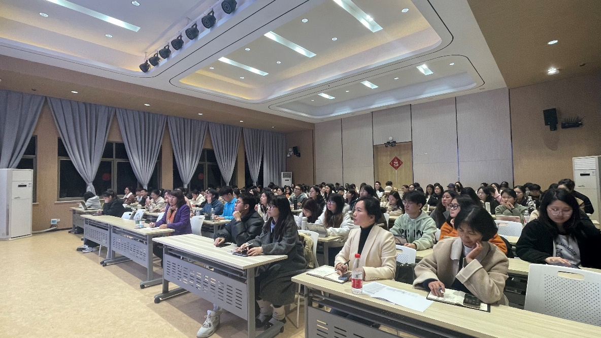 在互动环节,陈教授强调外语学习者在追求国际视野的同时,不应忽视对本国文化的关注和理解,尤其是在人工智能与外语学习融合的背景下,更应回归母语经典,结合中国哲学思想理论,避免片面的深刻性和深刻的片面性。