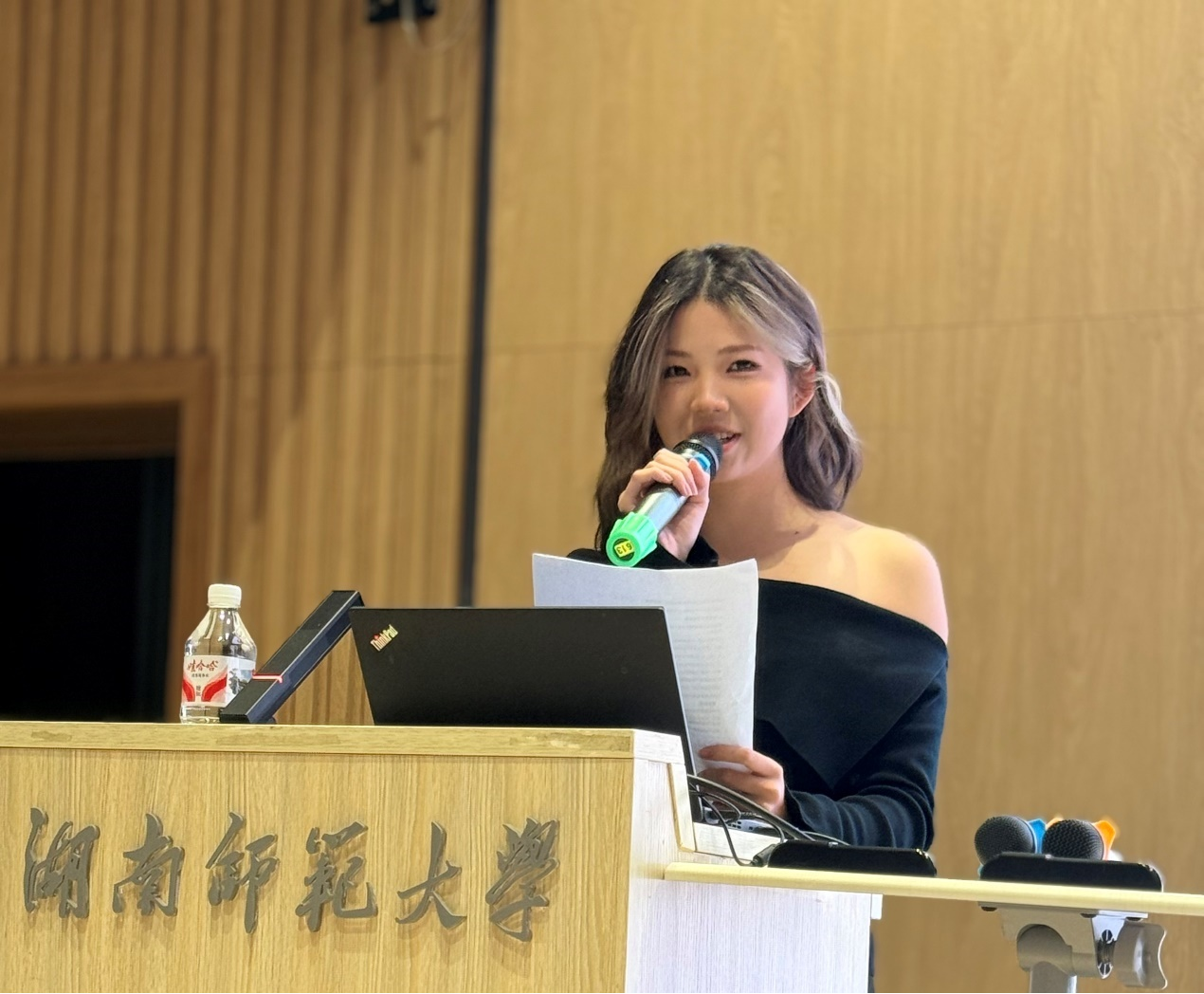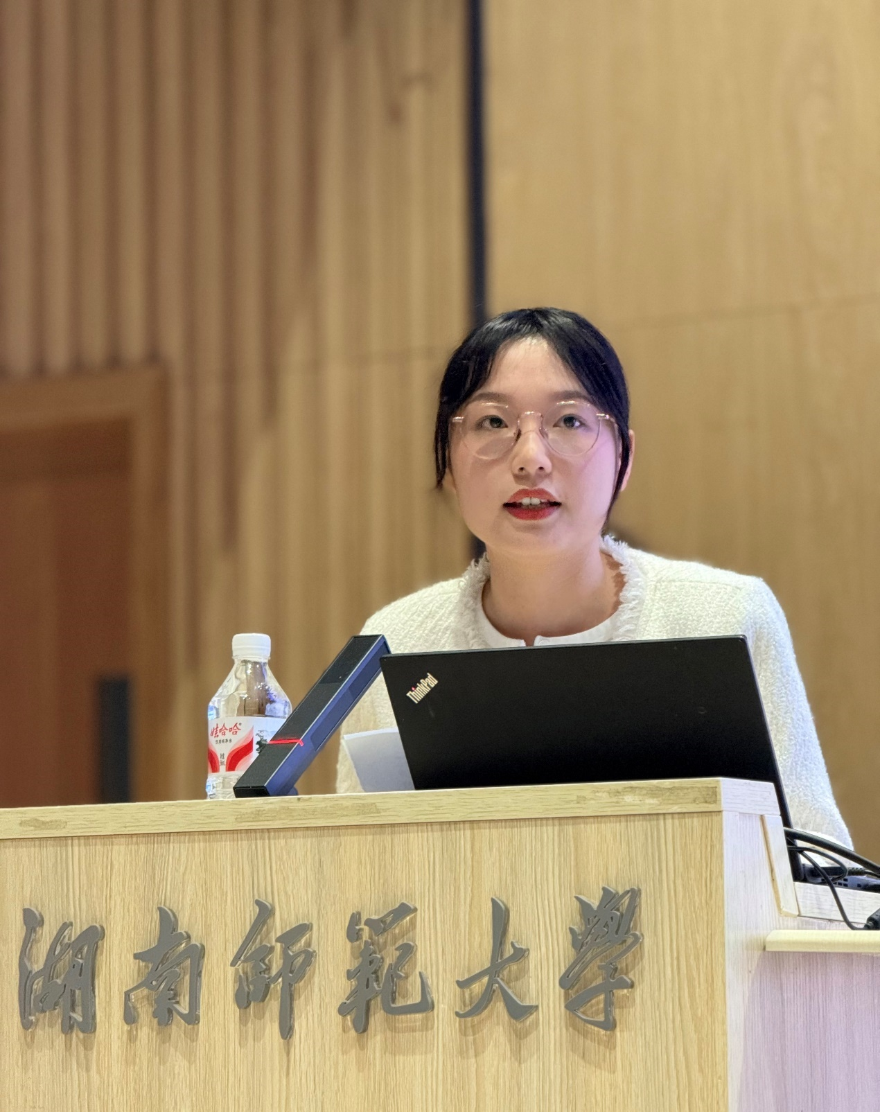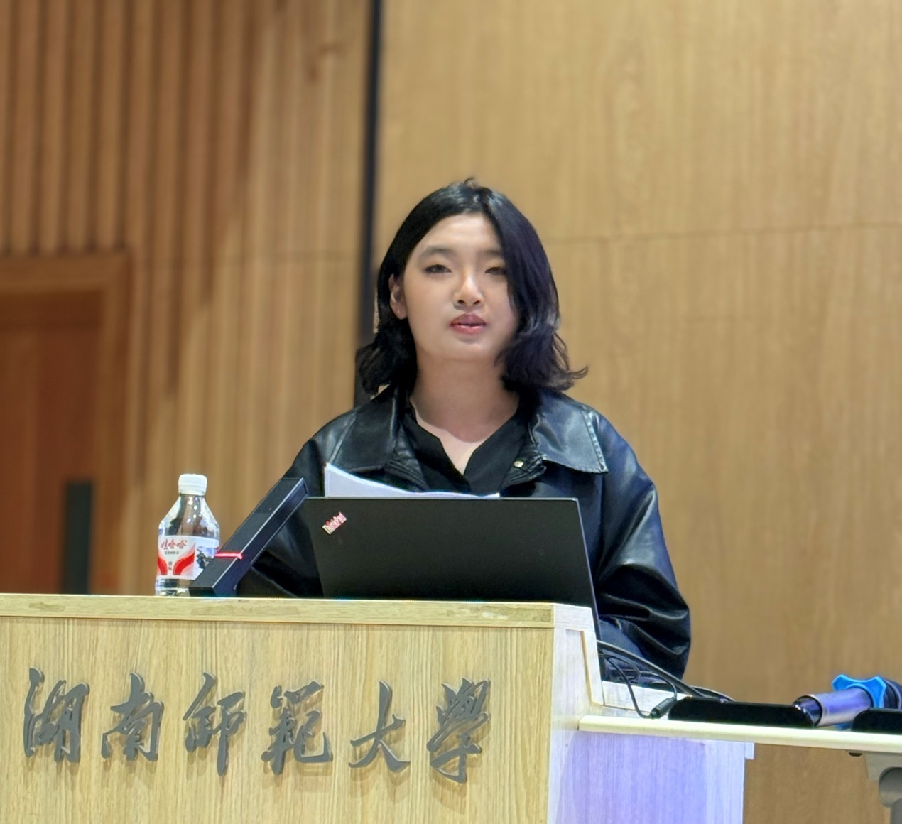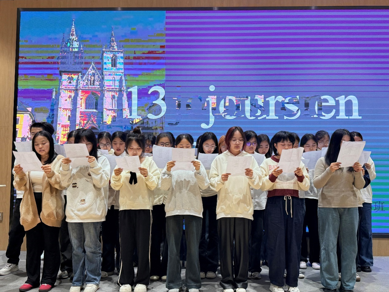 尹晶晶同学在开场致辞中回望了自己的法语学习之路:从初次体会法语之美的期待到深入品读文学与文化的从容。她向老师们的悉心教诲、同学们的温暖陪伴以及法语系平台的坚实托举表达了由衷的谢意。