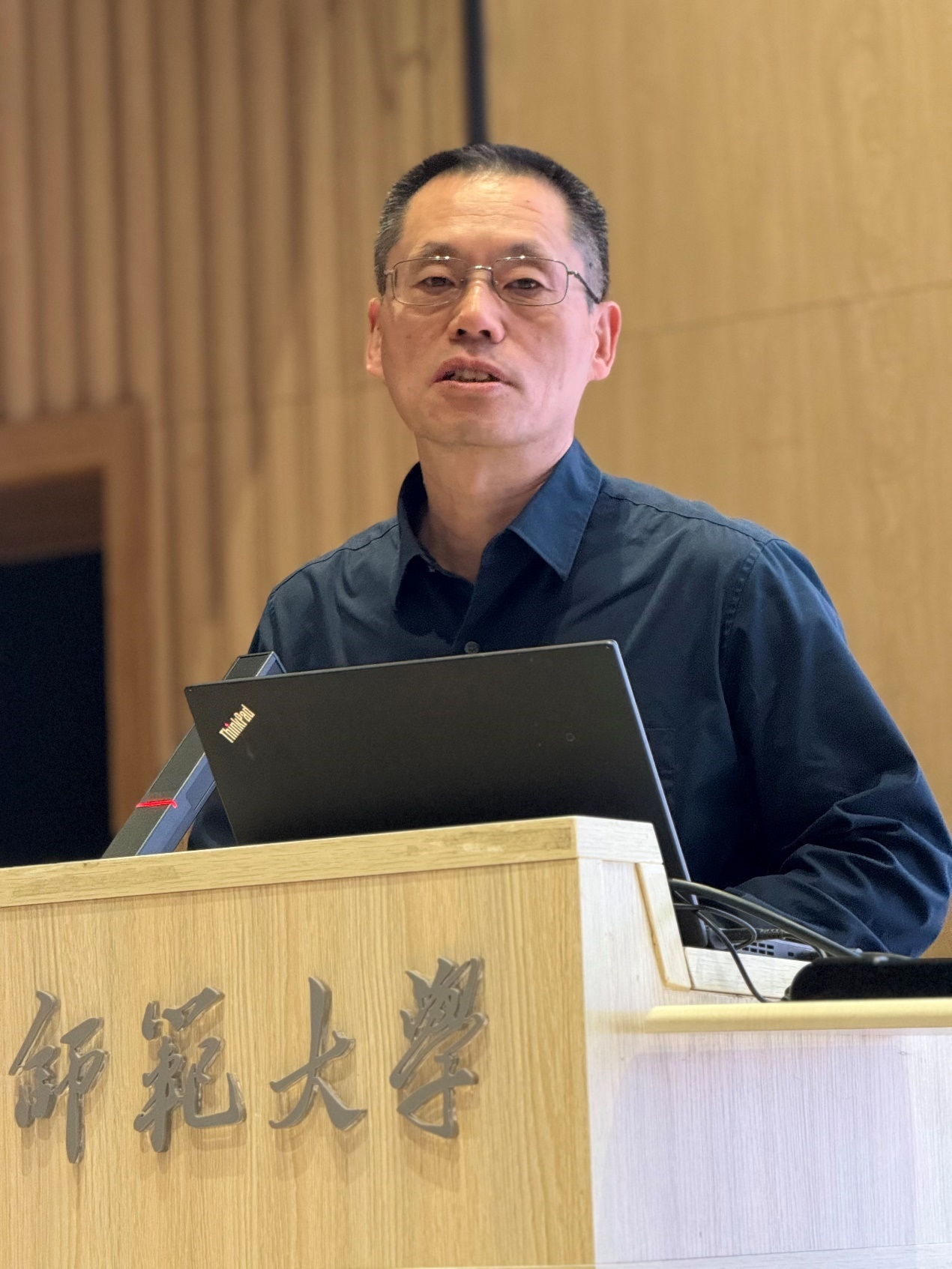 最后,张弛教授为师生讲授“开学第一课”。他赞扬了本次活动的欢快氛围,提醒同学们不要盲目苦学,而要在享受智性愉悦(le plaisir intellectuel)的同时,巧学、乐学,充实自己的学术储存,形成结构化思维,以法语反哺母语,培养清晰、有逻辑的表述能力。他以《在高速发展的时代,更要强调从容生活》为题,带领师生们思考高科技加速发展下,盲目求快所导致的人的异化。他引用古今名言与现实案例,批判单一评价体系忽视个体差异,引发同质化竞争与不正当竞争,如同让龟兔赛跑般反理性。他强调:人生是一场马拉松,应秉持可持续发展理念,清醒认识自我、学会取舍,遵循自身发展时区,在快节奏中慢下来欣赏生活,并以此勉励同学们应兼顾智性愉悦、快乐能力与审美表达,鼓励学生以理性精神、人道情怀、审美能力和踏实态度追求诗意人生。