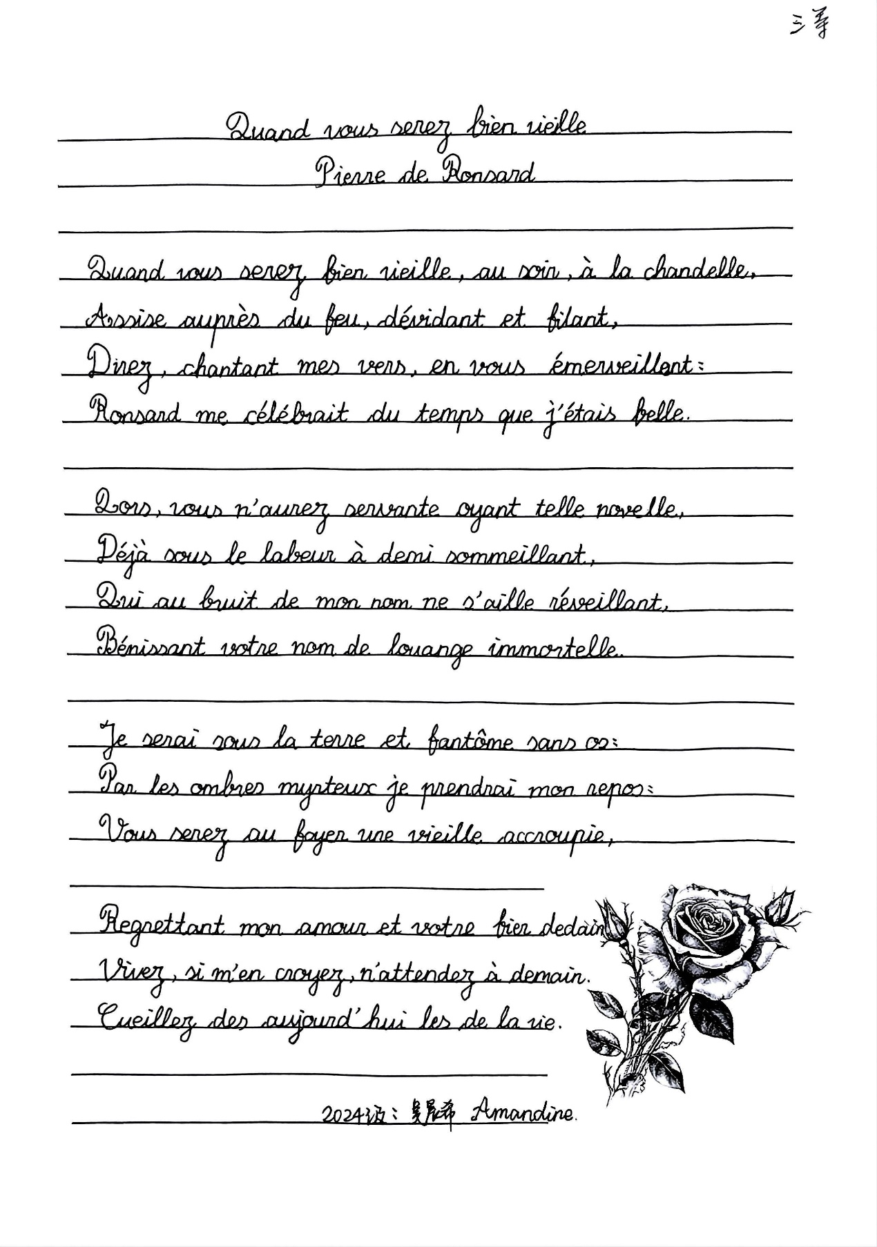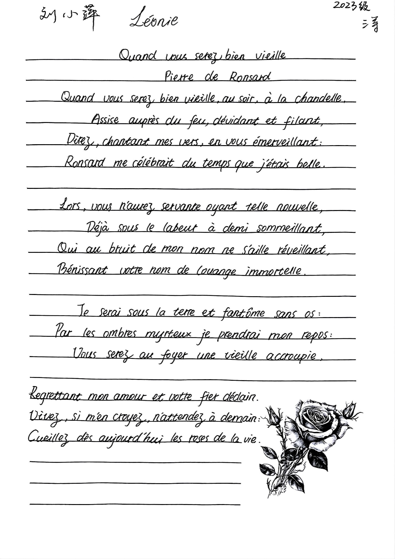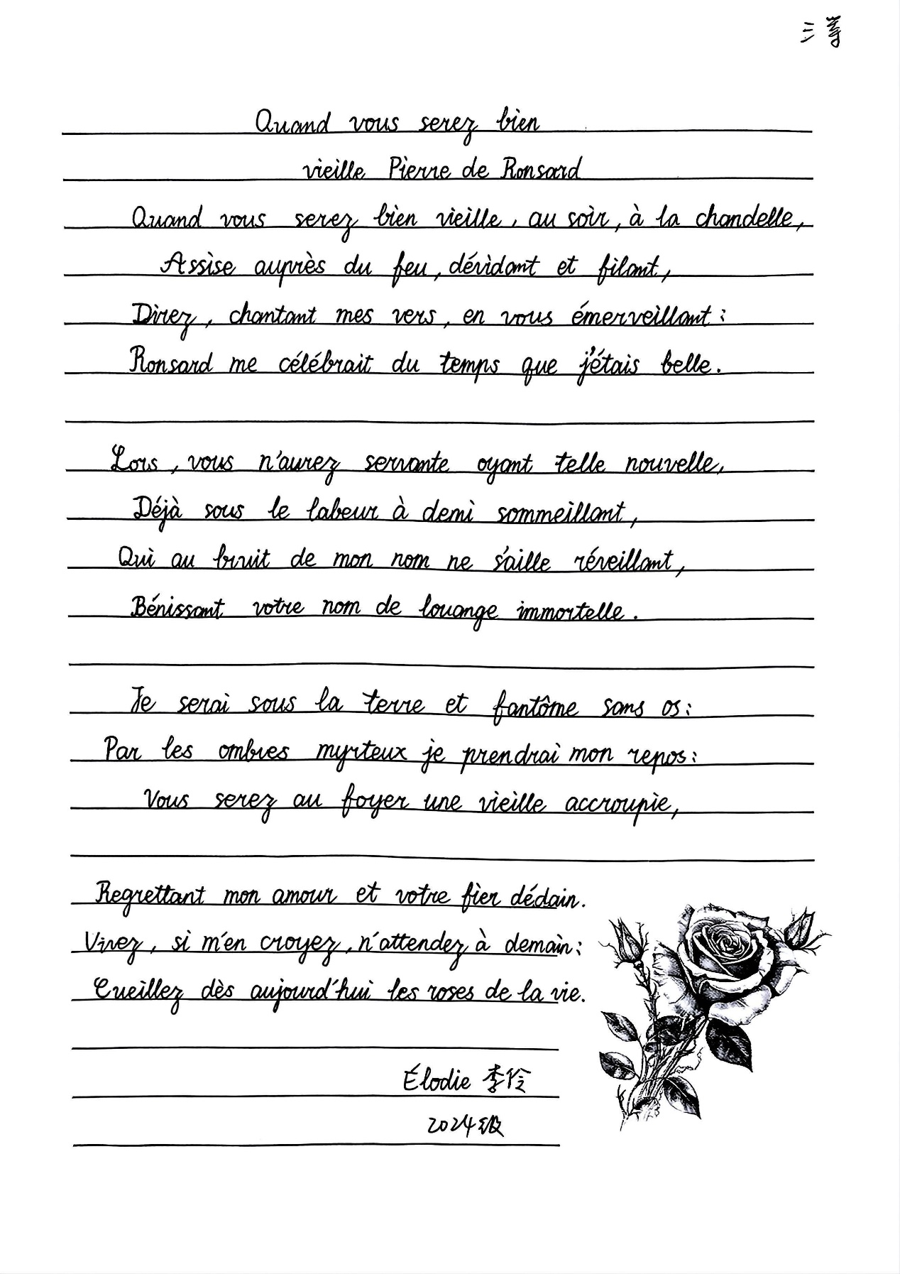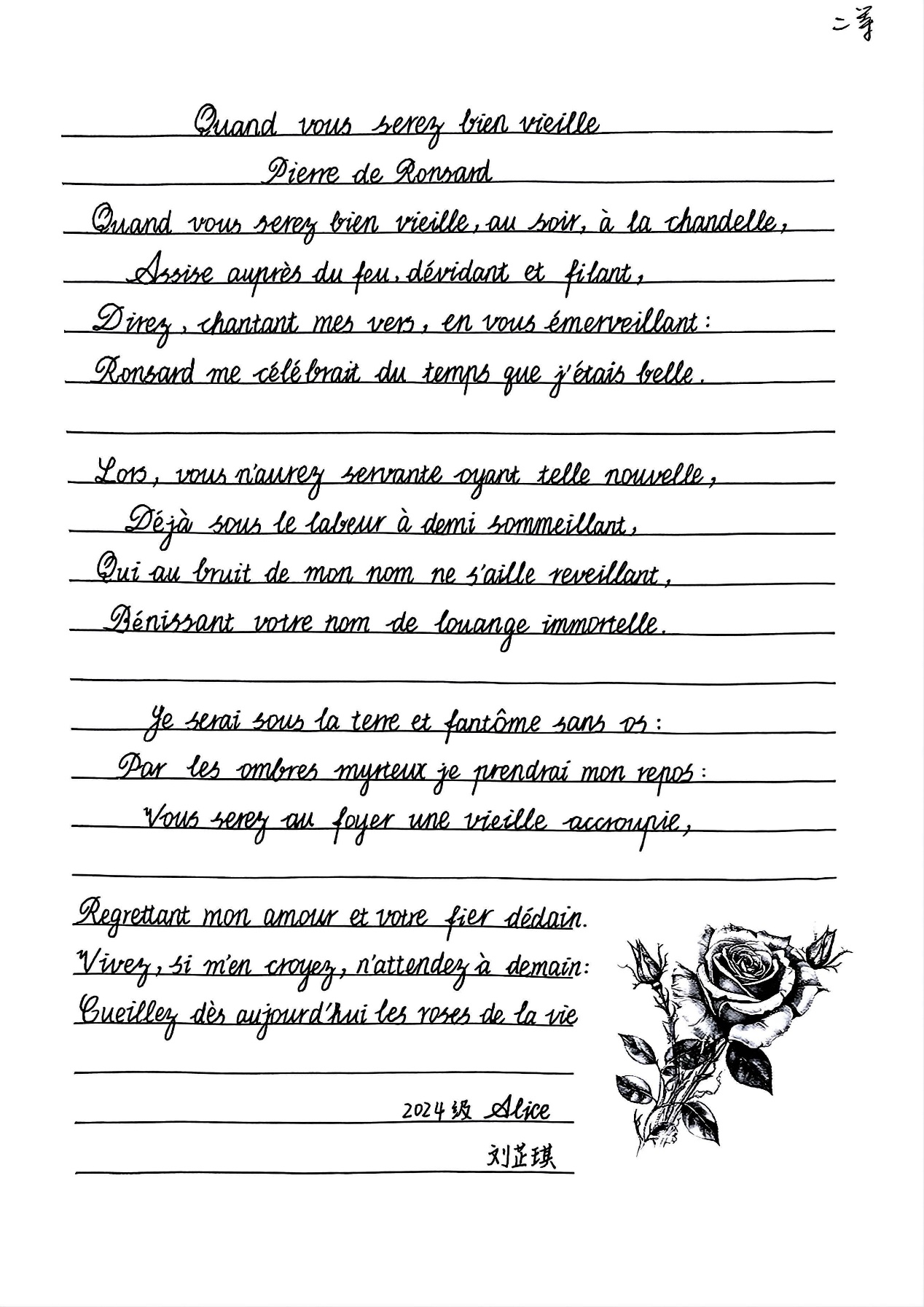 本次法语书写比赛不仅为同学们提供了一个展示自我、切磋技艺的舞台,也丰富了校园文化生活,增强了法语系的凝聚力,激发了同学们深入学习法语、探索法兰西文化的持续动力。