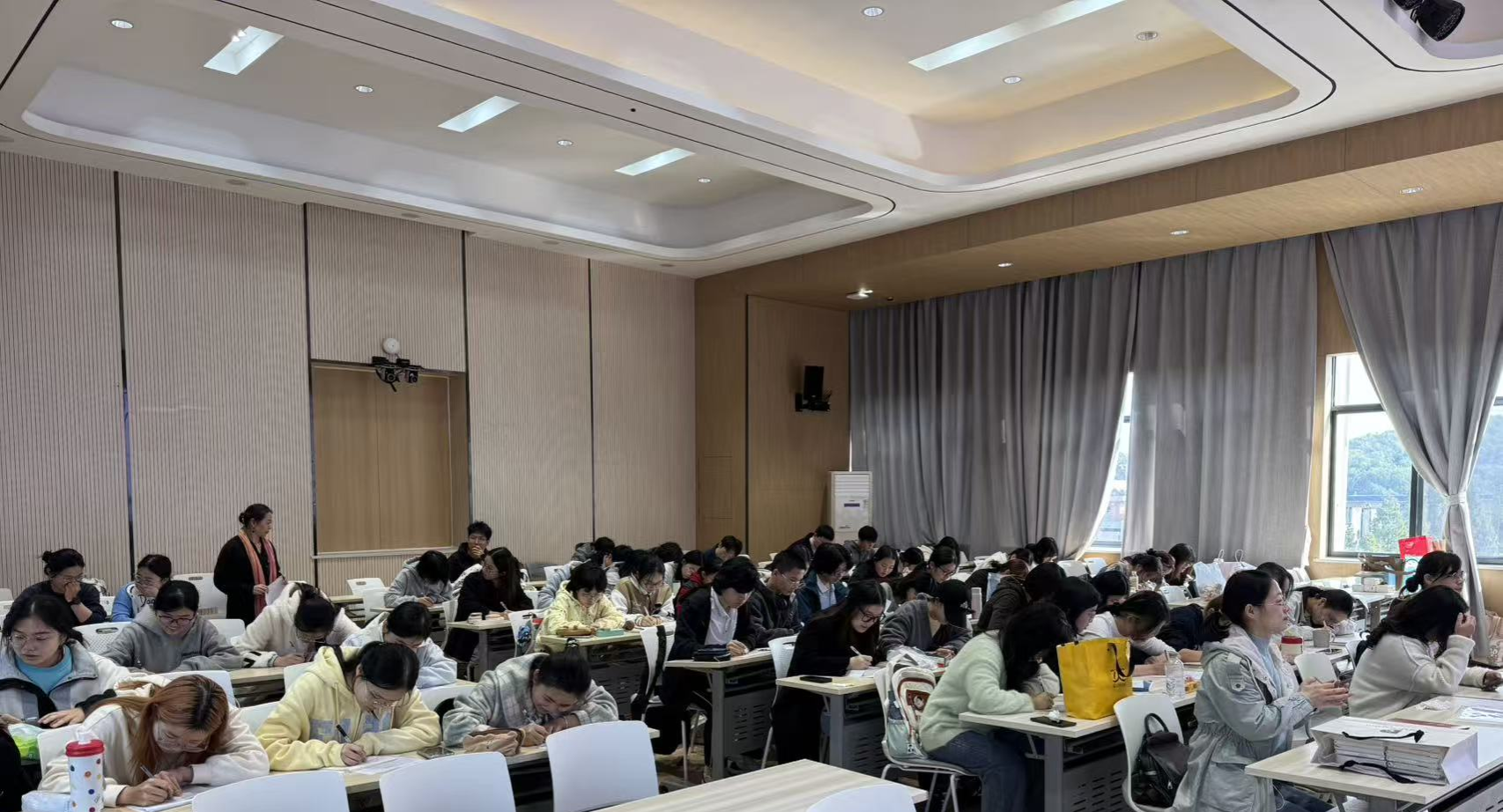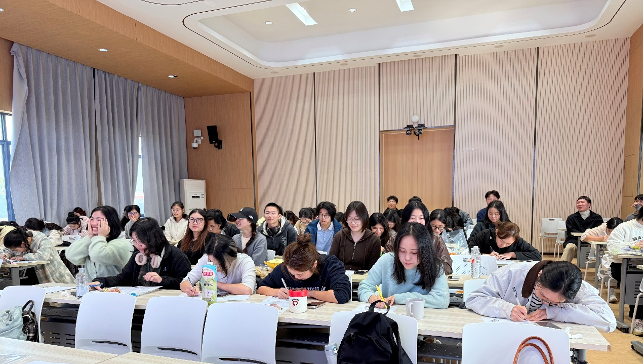 此次活动由陈丹老师主持,比赛在悠扬舒缓的旋律中拉开帷幕。伴随着悠扬的法语香颂,参赛同学们凝神静气,伏案疾书,笔尖在纸页上流淌出的不仅是优美的法文字母,更是对法语文化的深切感悟与浓厚兴趣。