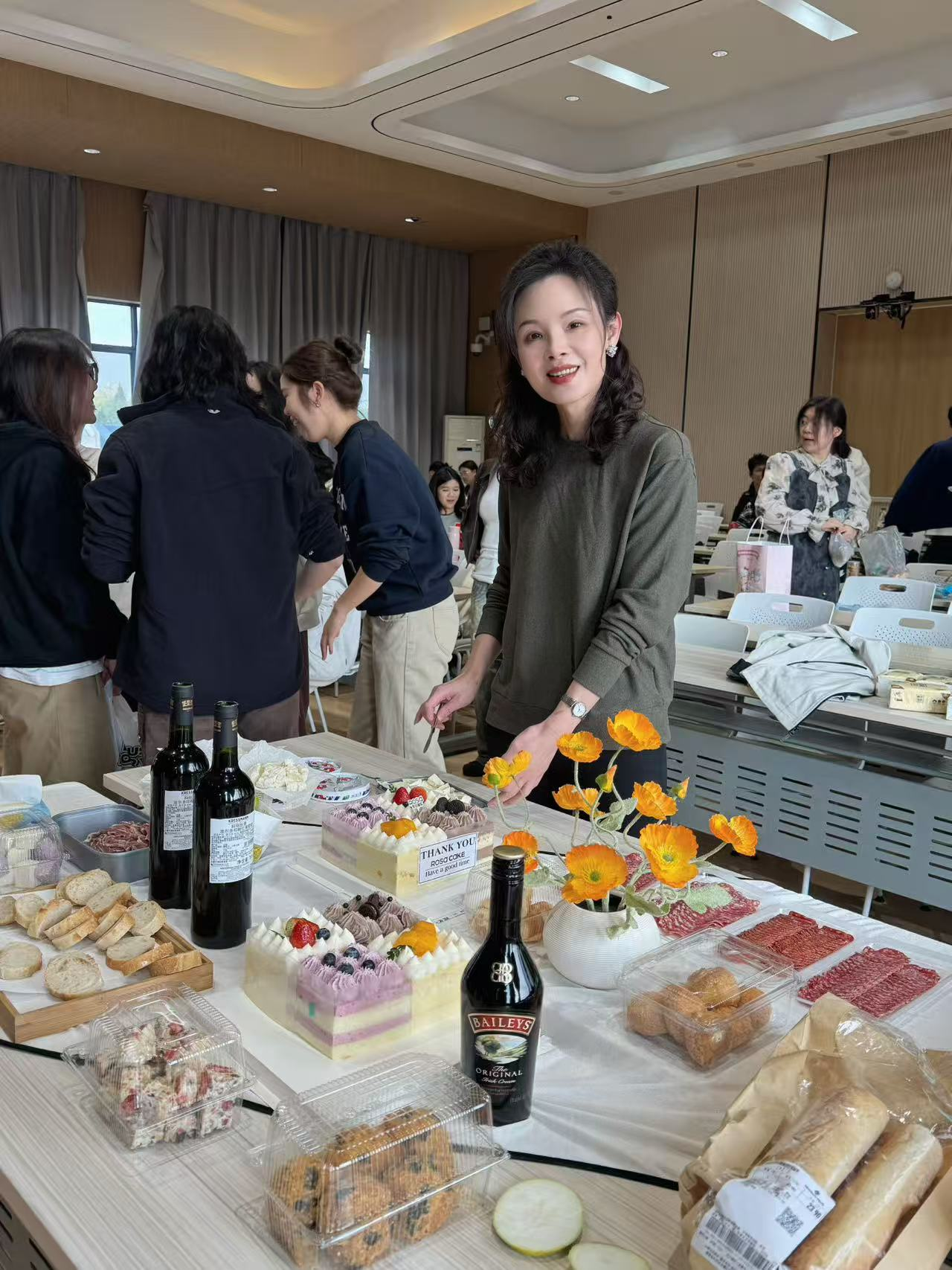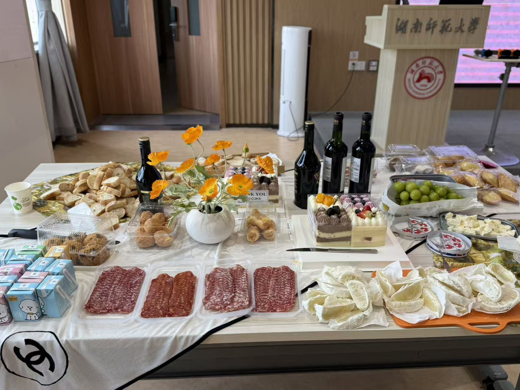 在这字美、诗美、歌美的氛围下,活动进入了温馨的小型庆祝酒会环节。师生们齐聚一堂,享用精心准备的法式点心与饮品,在轻松愉悦的氛围中畅谈比赛心得,交流学习体会,进一步拉近了师生之间的距离。