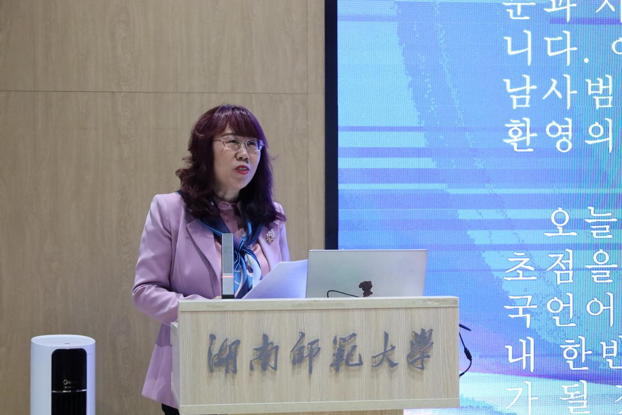 我校东北亚研究中心主任蔡美花教授在开幕致辞中指出,外语学科不仅是理解区域文化、沟通思想的重要桥梁,更是推动国别研究走向深入、实现跨文化对话的关键力量。在当前世界格局变革背景下,期待以本次研究论坛为契机,强化学科交叉与知识融合,构建朝鲜半岛研究与区域国别研究的新范式。