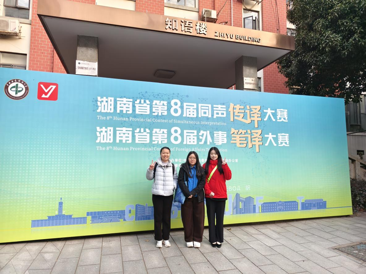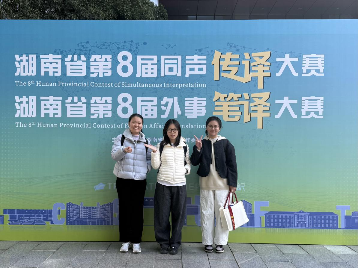 (通讯员 马琳 周天仪)11月29日,由中共湖南省委外事工作委员会办公室主办,中南林业科技大学承办的湖南省第八届英语同声传译大赛暨外事笔译大赛如期举行。学院选派15名研究生、本科生参赛,与来自全省十余所高校及涉外单位的70余名选手同台竞技,最终取得了一等奖3名、二等奖4名、三等奖6名的优异成绩。