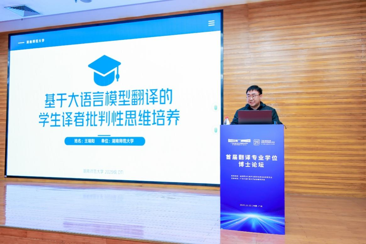 永利集团官网25级DTI博士生王瑞阳同学以《基于大语言模型翻译的学生译者批判性思维培养》为题,指出AI时代翻译教育面临的转型挑战。他认为,大语言模型在提升翻译效率的同时,也易导致学生过度依赖技术、弱化独立思考能力,为平衡技术应用与批判性思维培养,提出构建“人机协同、思辨先行”的教学路径,引导学生从“技术使用者”成长为“技术审辨者”。