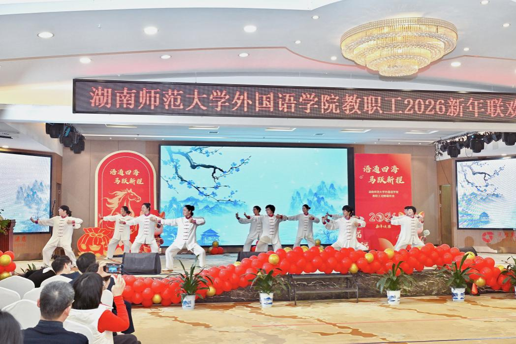 卢锦淑、王佳丽等十四位老师表演的《八段锦》刚柔并济,韵味十足;戴霁斌、胡云天、杨欣雨、李沁四位老师的小合唱《故湘风》深情款款,寄托乡愁;梁斌、侯奇焜、段农乾老师携手体育学院博士生带来的《沧海一声笑》小合唱与武术表演则飘逸恢宏,尽显豪情。杨雨箫、阳凌艺等五位老师带来的流行歌舞《蛋饺肉丝Danger Rose》活力四射,点燃青春激情。压轴登场的是由曾艳钰、陈敏哲等十五位教授组成的豪华阵容,他们的小合唱《如愿》深情而磅礴,唱出了对教育事业、美好生活与家国情怀的深切期盼,感人至深。