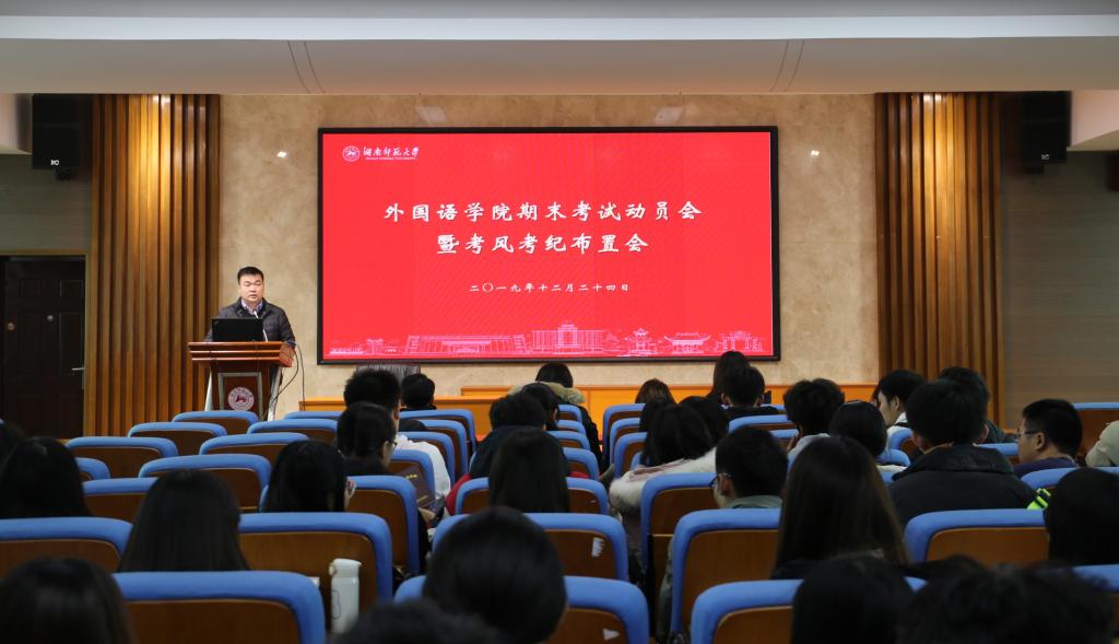 (通迅员 舒怡 王增城 胡潇予)12月24日中午,永利集团官网在515学术报告厅召开期末考试动员会暨考风考纪布置会。永利集团官网党委副书记贺慧星出席。会议由学工办主任张元强主持。