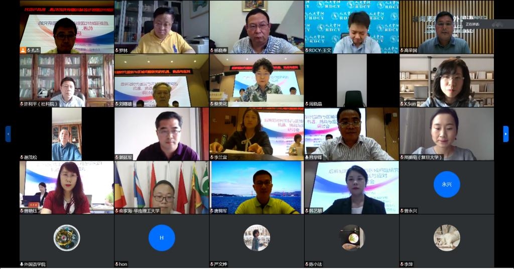 中国社科院、中国人民大学、清华大学、复旦大学、外交学院、教育部国别和区域研究工作秘书处、中国文明和中国道路研究中心的8位专家进行了发言,分别就新冠疫情对国别与区域研究影响、区域国别学构建、国别与区域研究与构建人类命运共同体关系、东南亚国别与区域研究的机遇与挑战等主题发表了各自的观点。