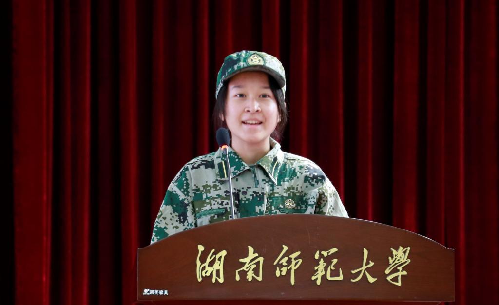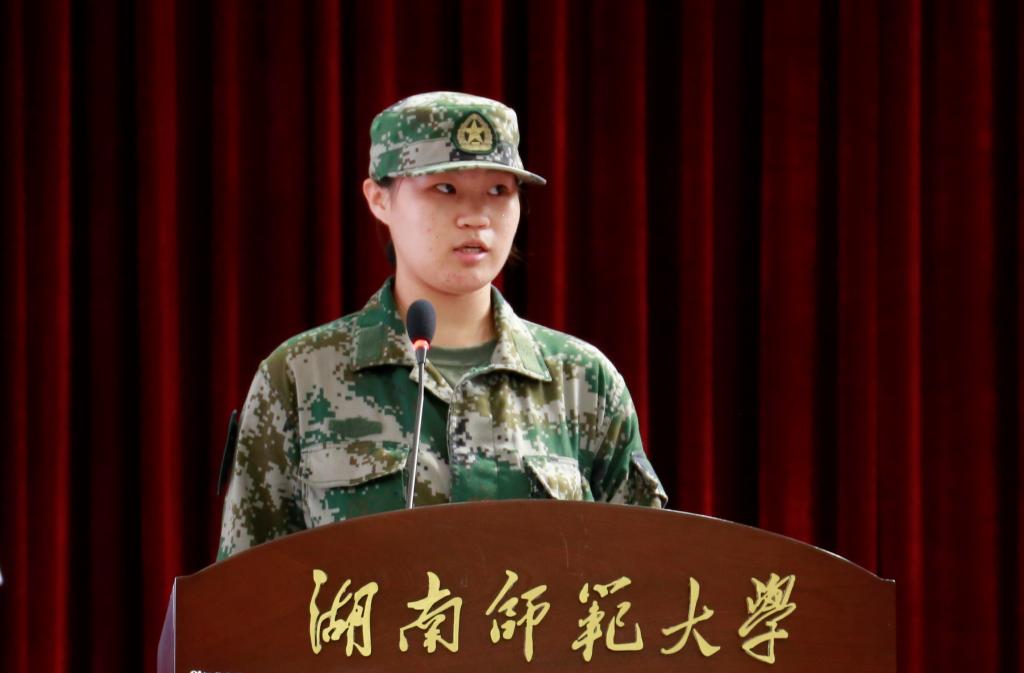 老生代表、2018级英语专业学生、学院军训总教官王嘉梦结合自身奋斗、成长经历向新生们分享感悟。她要求同学们在军训中严格要求自己,迎接挑战,并养成独立自主的习惯,培养自信。新生代表、2020级英语专业学生孙小约则代表全体新生表态:将把仁爱精勤的校训当作人生的座右铭,争做一名不负时代、不负韶华的师大外院人。