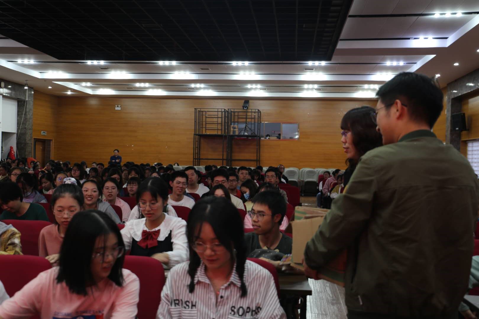 讲座后,曾艳钰为同学们分发了月饼,为2020级新同学送上了国庆、中秋节节日祝福。