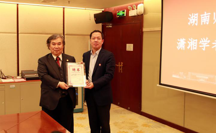 (通讯员 彭宜)3月11日下午,我校在国际学术交流中心四楼会议室举行“潇湘学者”聘任仪式。仪式由副校长唐贤清主持,校长刘起军为李大清教授等“潇湘学者”颁发聘书。
