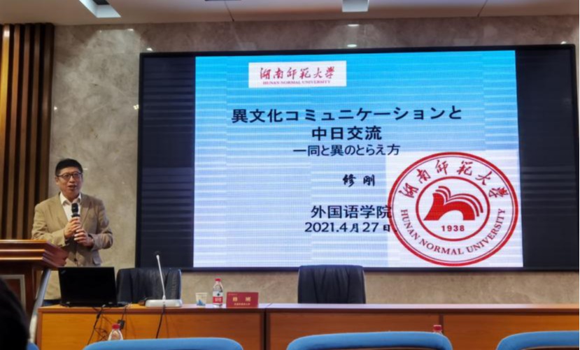 在讲座中,修刚教授就日语专业的学生在打好坚实语言基础的前提下,如何进行有效的中日跨文化交流阐述了自己的见解。通过一个个幽默、风趣的小故事,结合自己人生经历深入浅出地分析了作为外语人才应具备“语言+文化”的跨文化交际能力的重要意义,并着重强调了正确理解中日政治经济、历史文化、风俗习惯等领域存在的异同性的必要性。