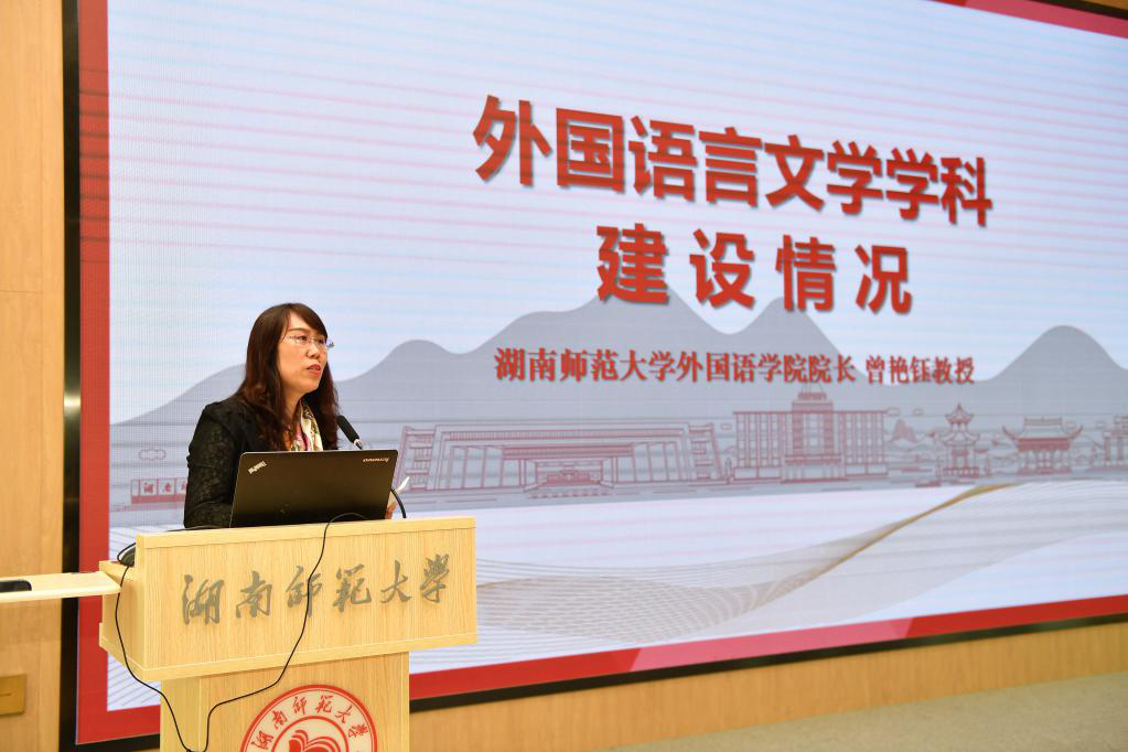 在613多功能报告厅,曾艳钰从历史沿革、学科发展、师资队伍、人才培养等方面介绍了学科的基本情况,一是深度融入国家外语教育改革总体设计,二是坚持立德树人培养拔尖创新外语人才,三是对标国际一流推进高水平教师队伍建设,四是铸就一流科研竞争力彰显强大社会服务力,五是坚定文化自信致力中华文化译介与推广。