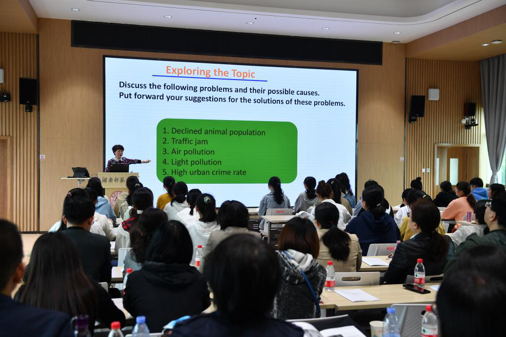 与会嘉宾观看了永利集团3044欢迎光临学科建设宣传片,并观摩了朱小舟老师的公开示范课,课程围绕《新时代核心英语教程》,紧扣《普通高等学校本科专业类教学质量国家标准(外国语言文学类)》和《普通高等学校本科外国语言文学类专业教学指南(上)——英语类专业教学指南》精神,注重学生英语综合运用能力的培养,旨在培养语言基本功扎实、人文素养深厚、国际视野广阔、跨文化能力强的英语类专业人才。