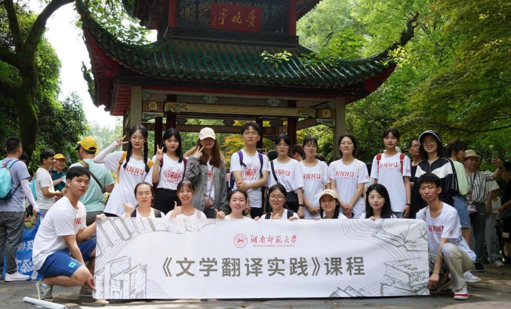 近年来,我校外国语言文学学科积极推进人才培养模式改革,丰富课程内容,创新授课形式,在国务院学科评议组成员、中国外国文学学会比较文学与跨文化研究分会副会长郑燕虹教授的策划下,开设了《湖湘文化传承传播》《文学翻译实践》《公示语翻译实践》等一批社会实践课程。相关课程围绕湖湘文化源流、新时代湖湘文化高质量走出去等问题,带领大学生走进田间地头、工厂企业、脱贫一线、改革前沿,在社会大课堂的实践中增强自信、增长本领。