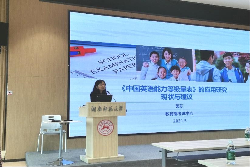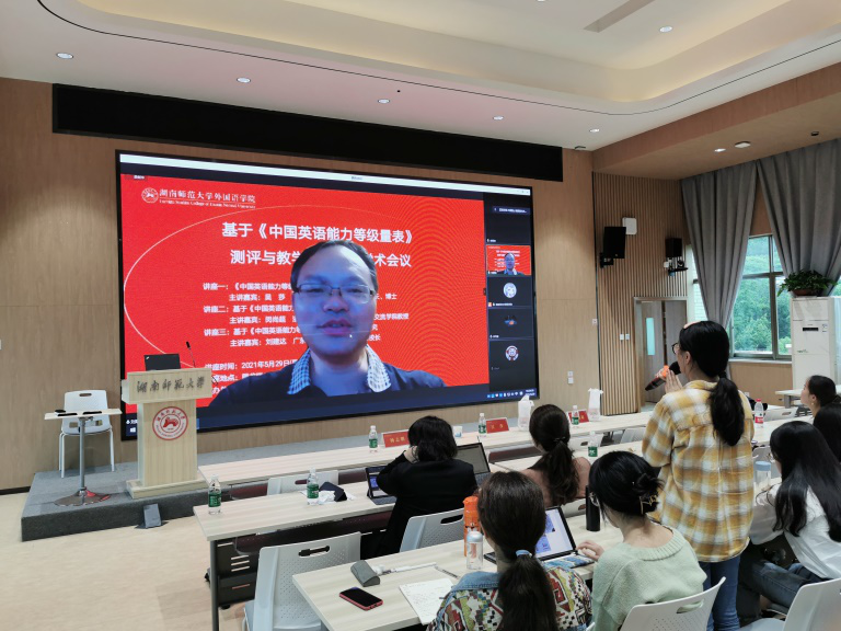 在研讨活动中,刘建达、吴莎和闵尚超三位专家围绕着《中国英语能力等级量表》的理论和应用问题做了学术报告,介绍了《量表》与托福、雅思、欧洲共同框架、课程标准和英语教材等项目之间的对接进展情况,展示了如何利用《量表》,结合认知诊断模型和题目反应理论等现代心理计量学研发诊断测试、实施英语分层个性化教学方面的实验效果,具体提出了围绕《量表》开展科学研究的若干重大课题。