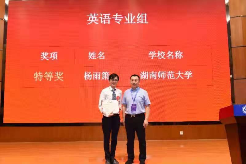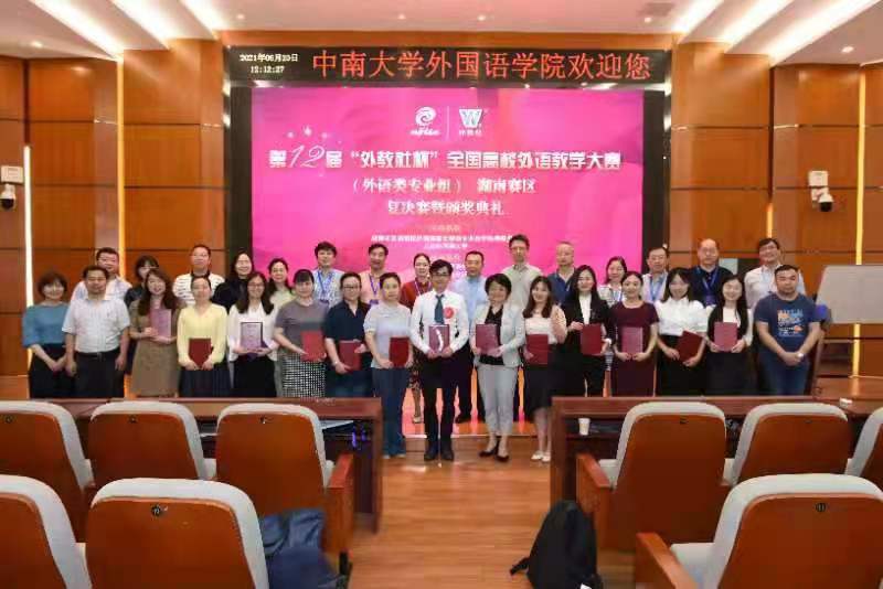 本次比赛由湖南省普通高校外国语言文学类专业教学指导委员会与上海外国语大学共同主办,由上海外语教育出版社与中南大学永利集团3044欢迎光临共同承办。比赛分为复赛(6月19日)与决赛(6月20日)两个阶段。复赛阶段为授课比赛,选手通过抽签获得指定的教学材料进行课堂设计并展开20分钟的现场授课;复赛成绩为前40%的选手进入到次日的决赛。决赛阶段为说课比赛,选手在赛前获得说课材料,进行30分钟准备后,围绕该材料阐述教学设计与授课思路,并回答评委的现场提问。该赛事日程紧凑,准备时间短,对参赛选手的教学理念、专业基本功、现场应变能力与课堂设计把控力有着极高的要求。通过层层选拔与激烈竞争,杨雨箫老师获得了全场最高分,从全省各大高校的参赛教师中脱颖而出,获得特等奖,并将代表湖南赛区参加12月在上海举行的全国总决赛。