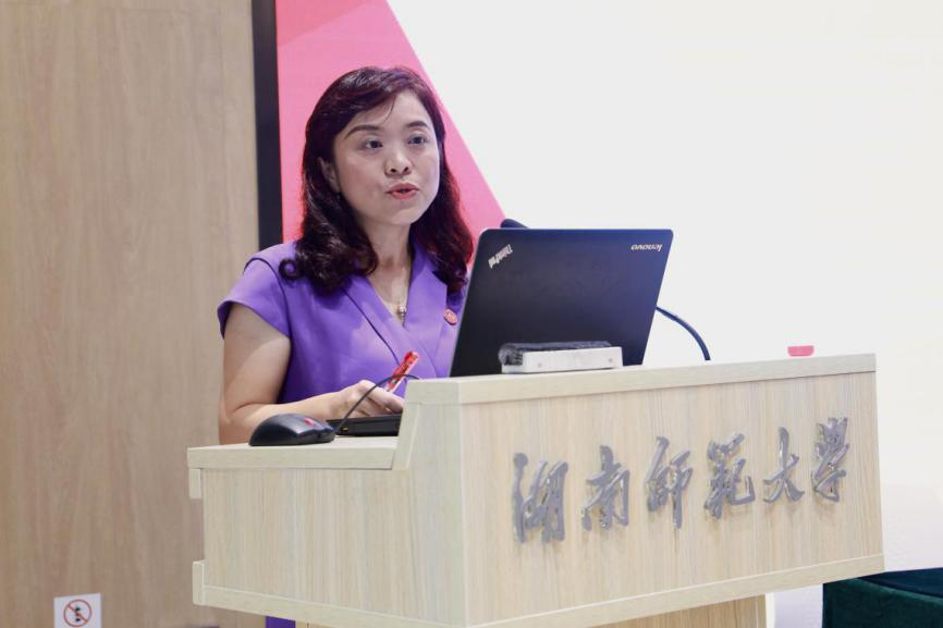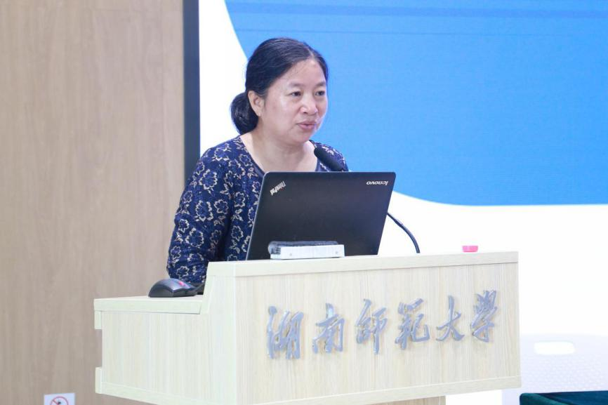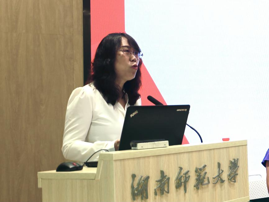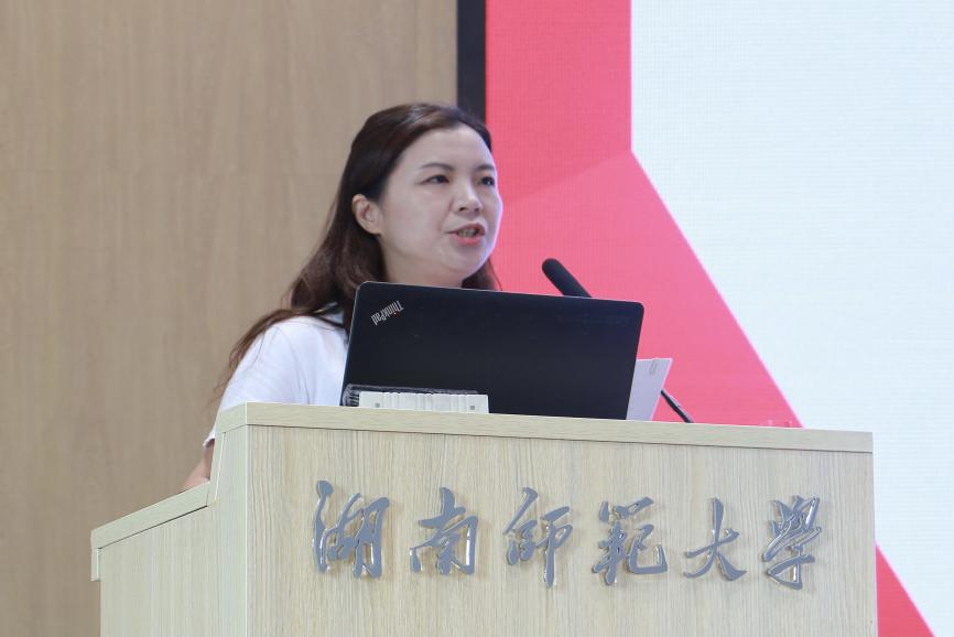 老生代表宋建茹发言,她分享了研究生课程对自己的启发,以及参与的各项比赛与学生工作给自己带来的收获,并对新生提出三点建议:一是善于反思;二是学会赋能升级;三是做深学笃行的学者,做到躬行合一。