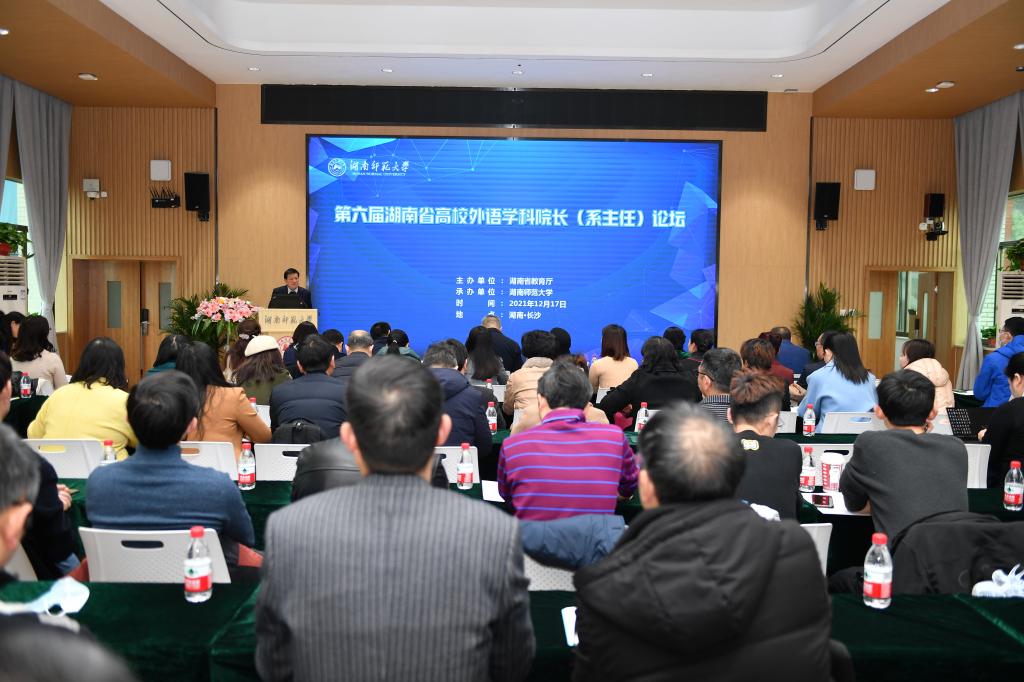 蒋洪新代表我校欢迎各与会嘉宾,并对省教育厅长期以来对学校和全省外语学科发展的关心支持和精心指导表达了衷心的感谢。他指出,习近平总书记多次强调,“要讲好中国故事,传播好中国声音,展现真实、立体、全面的中国”,外语学科发展肩负传播中华文明的光荣使命。院长、系主任都是学科发展的灵魂人物,要继续深化合作,抢抓“新文科”“大外语”“双万计划”等发展契机,深入研究商讨学科建设的好理念、好思路、好举措,带领团队在学科管理、课程建设、教学改革、科学研究、社会服务等方面积极探索与实践,培养更多融通中外的新时代外语专业复合型人才,在协同发展中一起开创外语教育事业的新格局,为服务“三高四新”战略、推动中华文化走出去、构建人类命运共同体做出新的更大贡献。