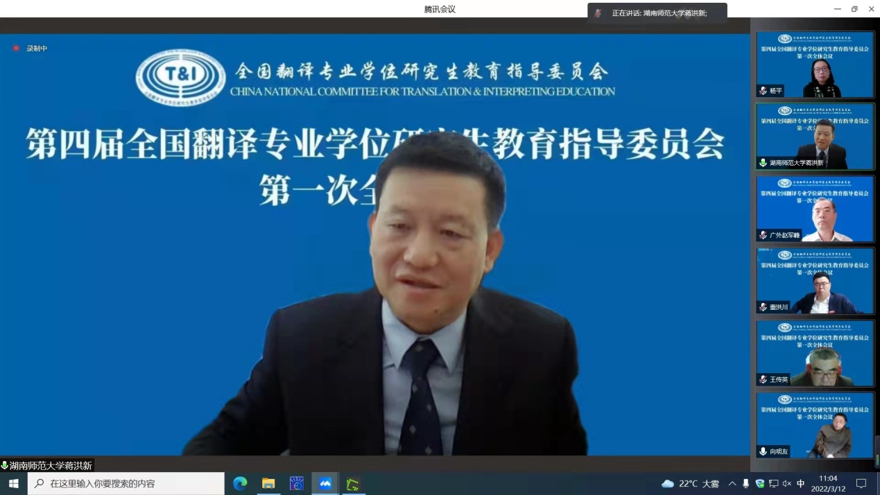 (供稿 永利集团3044欢迎光临)近日,第四届全国翻译专业学位研究生教育指导委员会以视频方式召开第一次全体会议。教育部学位管理与研究生教育司(国务院学位委员会办公室)二级巡视员唐继卫,第四届教指委主任委员、中国外文局副局长于涛,教指委专家委员会主任、中国外文局原副局长兼总编辑黄友义出席会议。教指委副主任委员、秘书长及全体委员参会。第四届教指委副主任委员、欧洲科学院院士、我校党委书记蒋洪新教授出席会议并讲话。