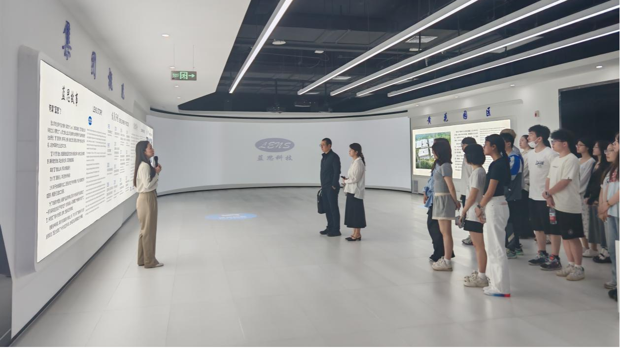 座谈会后,师生一行在蓝思科技工作人员的引导下,参观了企业展厅。通过观看企业宣传片、聆听技术讲解、了解产品成果,同学们直观感受到蓝思科技在电子视窗防护玻璃、触控模组等领域的创新成果与行业领先地位。展厅内陈列的专利证书、荣誉奖项及全球合作伙伴名录,彰显了企业强大的研发实力与国际化视野。