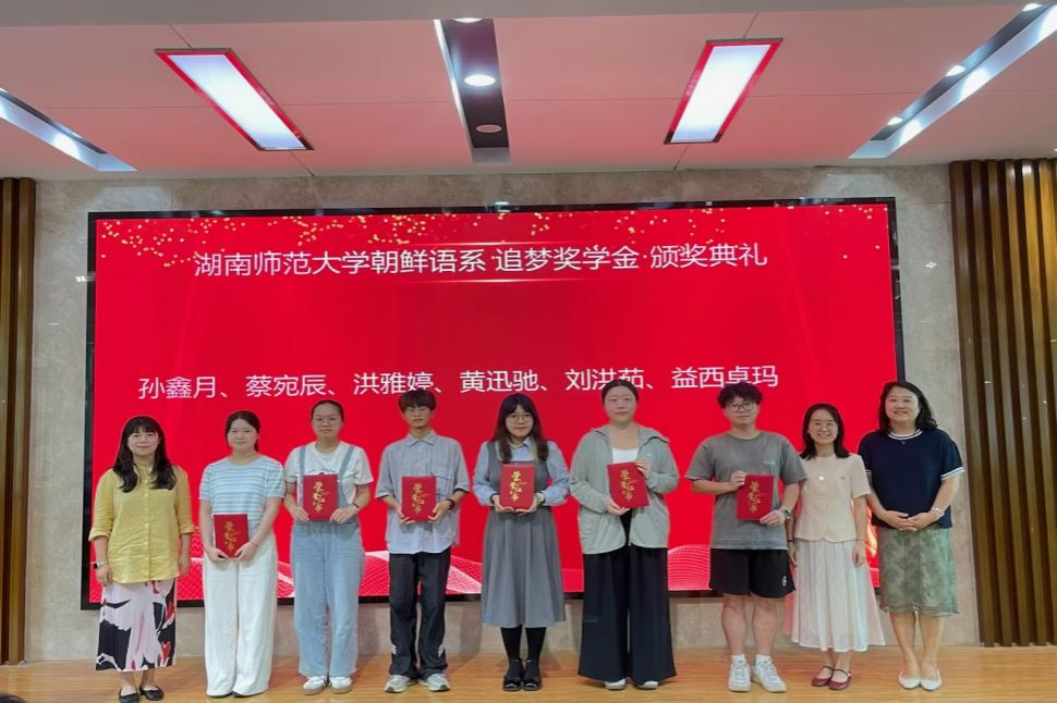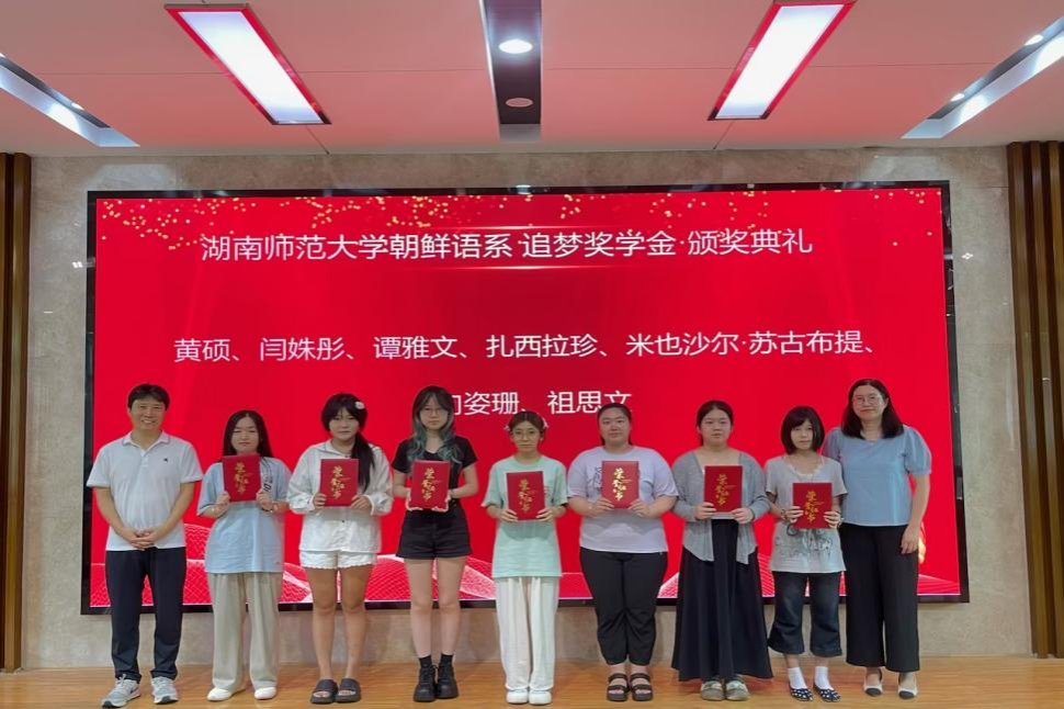 (通讯员:刘萱、杨一曼、戴墨帆)2025年6月19日下午,永利集团3044欢迎光临朝鲜语系在腾龙楼515隆重举行首届“追梦奖学金”颁奖典礼,表彰在朝鲜语专业学习中表现卓越的本科生,激励更多青年学子投身韩国学研究事业。本次奖学金由国际重大项目“韩国古典学研究平台构建与国内韩国学高级人才的培养”及“中国韩国学的创新与发展”(项目负责人:蔡美花教授)专项资助,旨在推动育人事业发展,为中国韩国学领域培育后备力量。