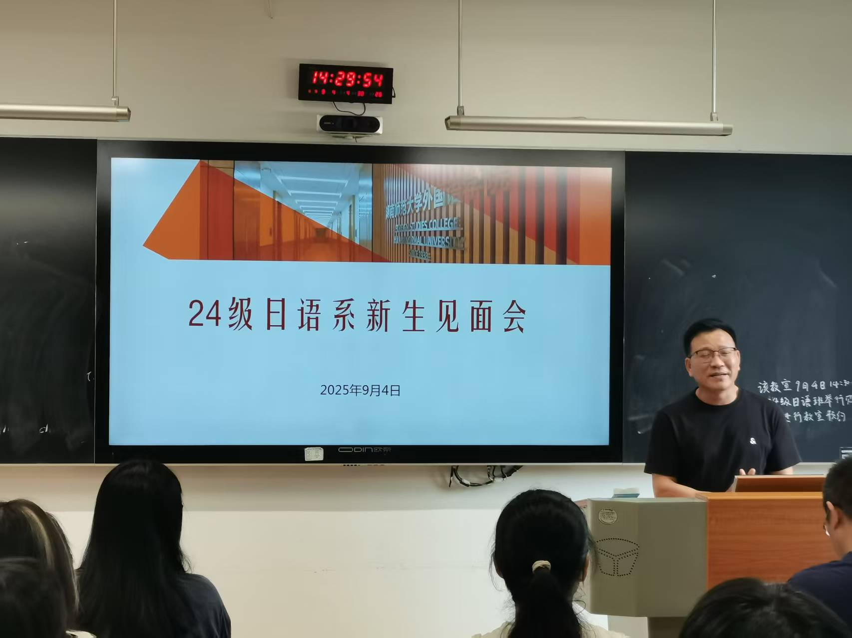 (通讯员:胡玥)2025年9月4日下午,为鼓励同学们以崭新的姿态开启日语学习生活,树立明确的学习目标,规划好未来的发展方向,永利集团3044欢迎光临日语系在腾龙楼410举行2024级专业新生见面会。本次见面会由日语系主任陈小法主持。