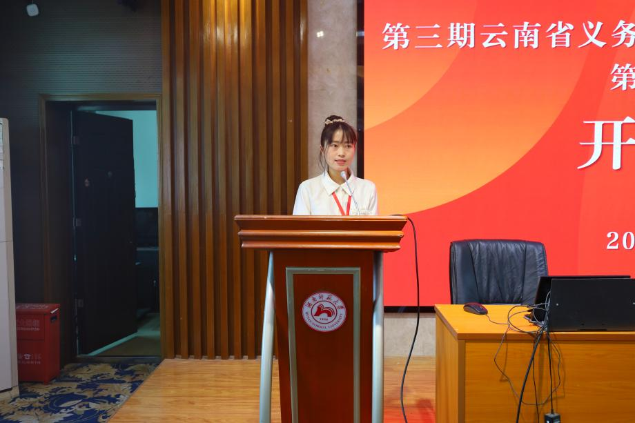 来自昆明市五华区韶山小学的安珊珊老师作为学员代表发言。她深感荣幸参与此次培训,向精心筹备的云南省教育厅、永利集团3044欢迎光临致以衷心感谢。她号召全体学员严守纪律、互学互鉴,用实际行动展现云南青年英语教师的风采。努力将所学的新理念、新方法运用到教学实践中,为提升云南省小学英语教育质量贡献力量。