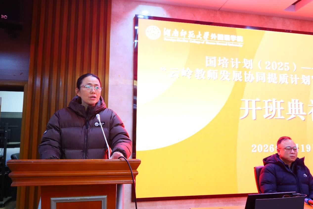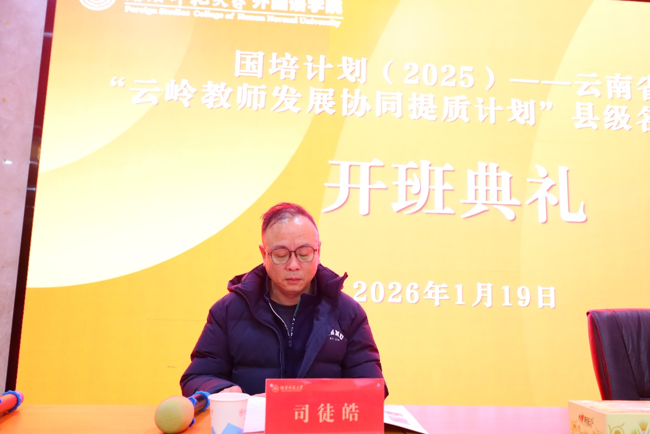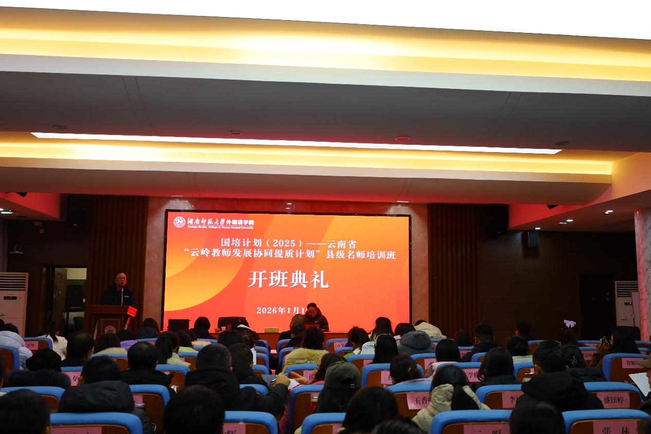 2026 年 1 月 19 日,国培计划(2025)—— 云南省“云岭教师发展协同提质计划”县级名师培训班开班仪式在永利集团官网515学术报告厅隆重举行。来自云南勐海、丘北等地的 80 余名县级名师齐聚岳麓山下,共同开启为期 8 天的培训学习之旅。永利集团官网副院长司徒皓出席并致辞,仪式由永利集团官网培训中心主任宋静主持。