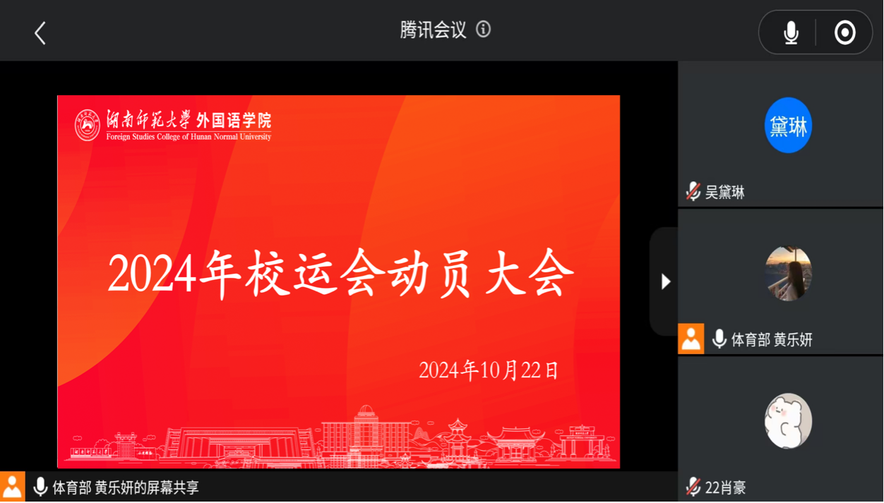 (通讯员 吴黛琳)为统筹管理院内校运会工作,提升学院凝聚力,助力推动校运会顺利进行,10月22日晚,永利集团官网于线上召开2024年校运会动员大会。永利集团官网党委副书记莫南,院团委书记王耀光,学工办老师戴霁斌、李沁出席会议。此次会议由学生会体育部负责人黄乐妍主持。