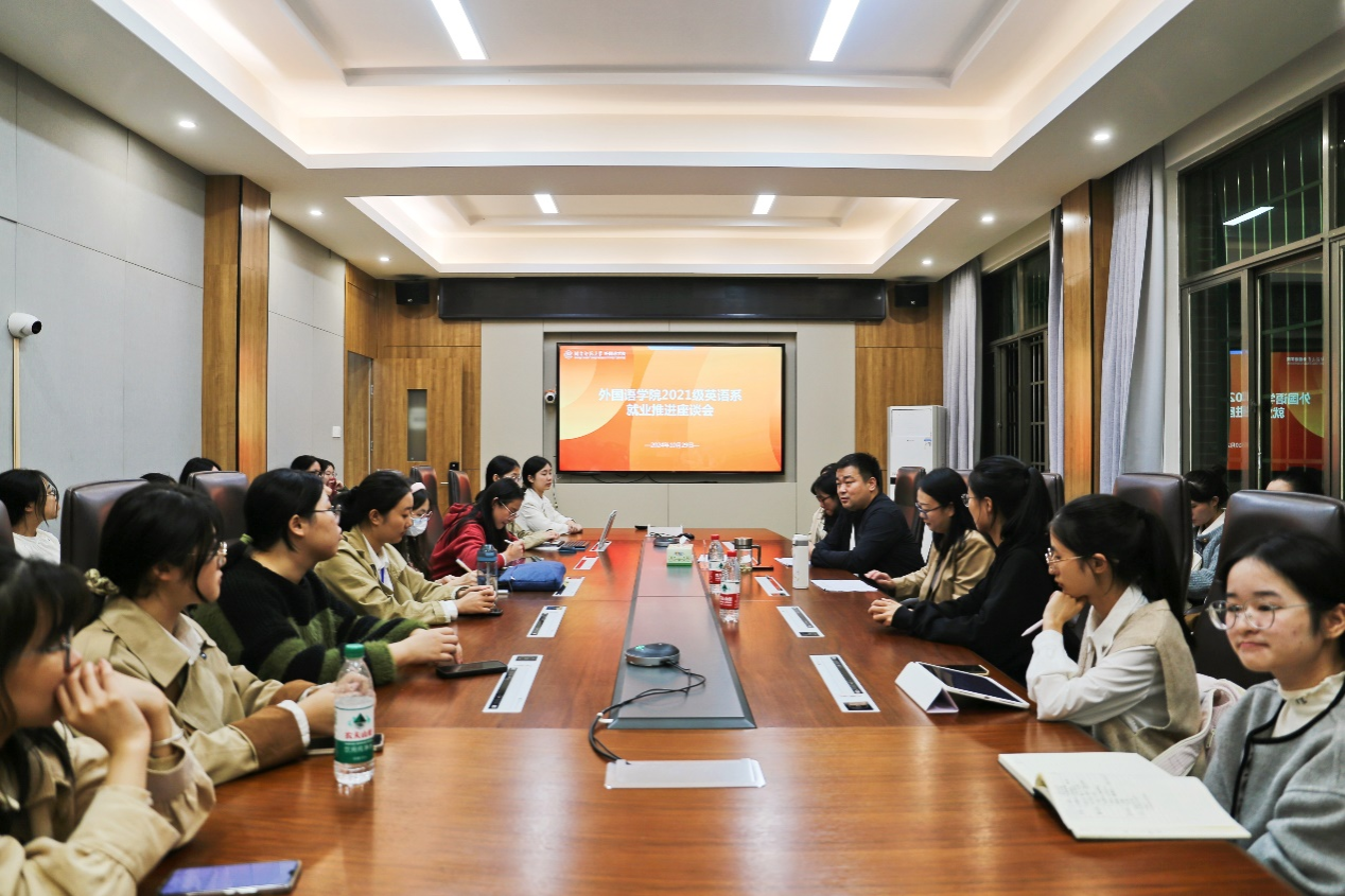 英语系主任叶冬副教授,翻译系主任马纳克副教授、刘云雁老师,法语系主任方丽平副教授,俄语系主任何冰琦老师,欧阿语系负责人邢鸿儒老师,韩语系韩燕老师,日语系肖婧老师,德语专业阳凌艺老师,阿语专业王定筠老师,葡萄牙语专业黄琳老师分别参加了各专业语系的2021级毕业生就业工作推进座谈会。