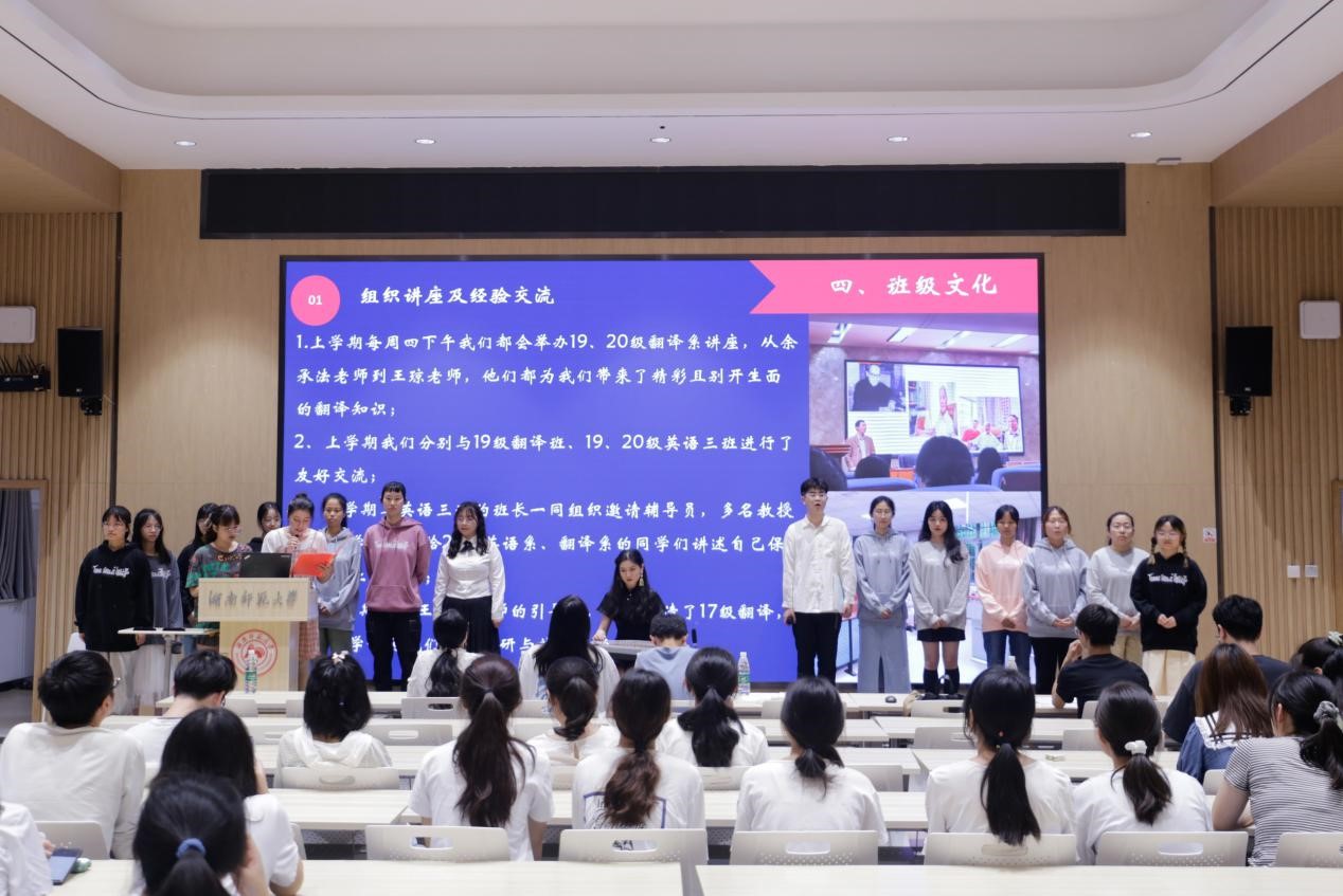 2020级各班依次上台展示,运用小品、新闻播报等载体展示班级组织建设、学风建设、文化建设、班级成果四个方面的内容,展现了极具特色的班级风采。评委依次对各班展示作点评并提出相应修改意见。