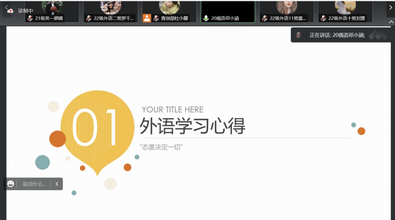 (通讯员 郭婧 周子楠)传经授道,携手并进。12月3日下午,永利集团官网团委举办外语学习经验交流分享会。本次分享会由2020级俄语专业本科生邓小涵主讲,团委青创部负责人杜小朦主持。