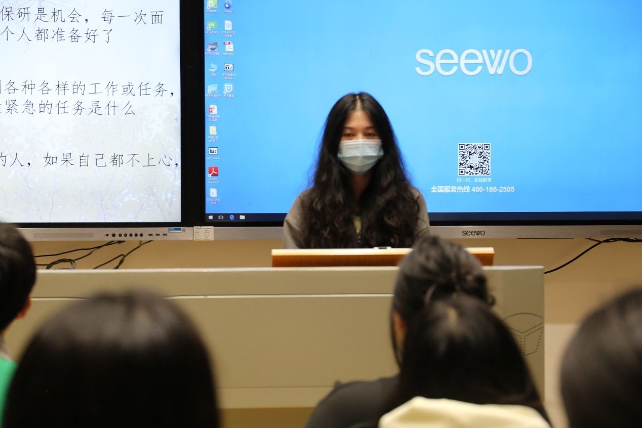 周璇从注重能力提升,做到主次分明,及时关注信息等几个方面分享了在保研的过程中需要注意的一些细节和重点。她希望保研的同学要保持冷静,多思考,多尝试,多寻找机会;同时也要相信自己,相信自己的能力和潜力,不要轻易放弃,坚持到底,相信自己一定能够成功。