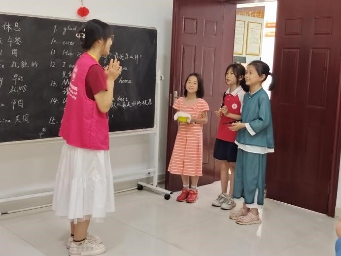 (通讯员 沈润 朱耘伍 佳欣)6月3日上午,永利集团官网团委“区校共建”项目部于学堂坡社区公共服务中心开展本学期第八期“学识付诸实践,语言点亮未来”国别文化课堂活动。永利集团官网志愿者带领小朋友们学习礼仪的英语表达,感受中西礼仪文化异同。永利集团官网本科生、研究生第一党支部成员以及留学生志愿者共同参与本次活动。