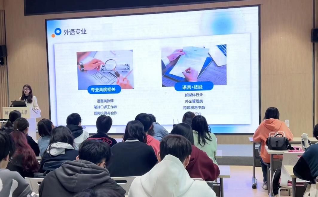 在本期讲堂中,林如茵首先强调,随着全球化进程的加速,外语专业学生的职业规划也呈现出新的发展趋势。同学们应该寻求多元化的发展路径,积极拓宽国际视野。林如茵的分享帮助同学们更加科学合理地规划大学学习与生活,树立专业学习意识及职业目标,从而做出更明智的职业规划。