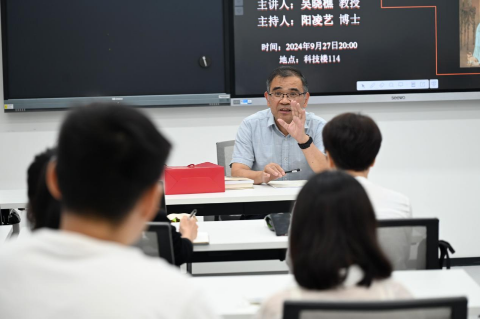 最后,阳凌艺老师对吴晓樵教授表示衷心的感谢,她希望同学们能认真学习前辈的经验,更加深刻地认识到中西文化交流的无穷魅力与重大价值。整场讲座中,吴晓樵教授分享的知识内容丰富,语言深入浅出,深深吸引了全场听众。现场欢声笑语不断、气氛热烈。吴老师对本次圆桌会议的引入,极大地拓宽了同学们的国际视野,激发了同学们的学习热情,也激励同学们以蓬勃的朝气奔赴美好的前程。