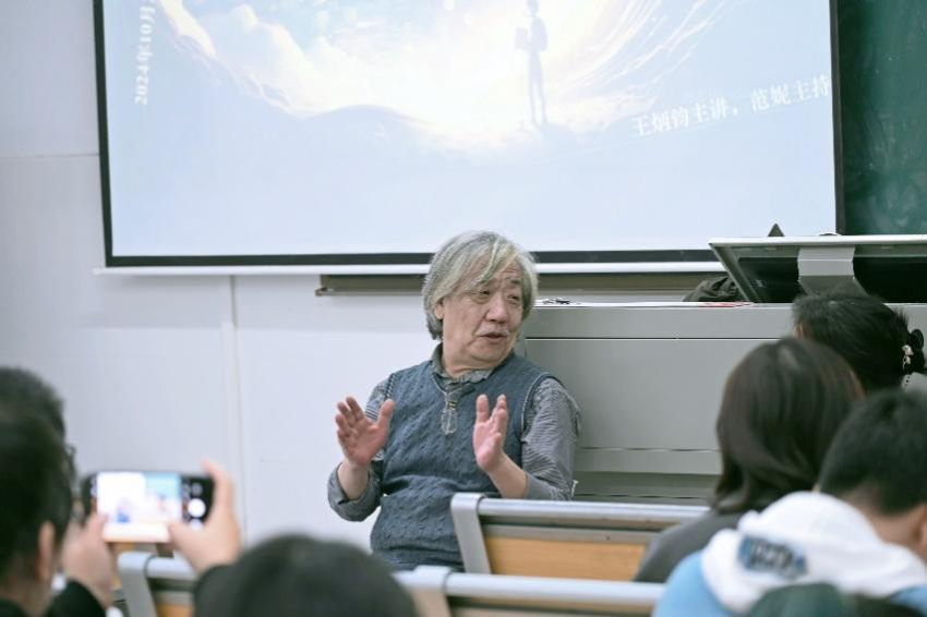 讲座伊始,范妮老师从此次圆桌论坛的主题“德行天下”出发对王炳钧教授进行了相关介绍,并强调了德语专业立德树人的人才培养理念。随后,王老师将外语学习和生活态度联系起来,为同学们的学习与生活提出了具体而深刻的建议。他认为,在当今城市化、信息化的进程中,同学们应当丰富自己的生活体验,在与实物世界的交流中探索自身与外界的关系,切勿流于外在形式或盲目跟随大众。对于同学们目前阶段的外语学习,王老师提出以下建议:首先,认清语言的作用至关重要;其次,在听说读写的过程中要抓住机会去学习多元的表达方式;最后,在打好基本功的同时拓宽视野、启迪智慧、深入体验文化差异。