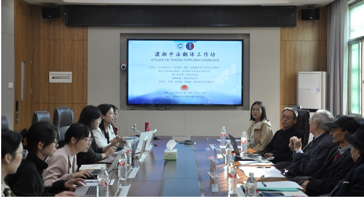 (通讯员 曹雪 李安然 刘盼)2024年11月1日上午,由永利集团3044欢迎光临法语系主办的第二届“潇湘中法翻译工作坊”在腾龙楼204会议室隆重举行。本次活动特邀法国国立东方语言文化学院的Joël Bellassen(白乐桑)教授和Michel Bozdémir教授、深圳出版社胡小跃译审作为嘉宾,与我校法语系学科带头人张弛教授共同主讲。活动由费乔荣(2021级)、曹雪(2022级)和金晓童(2023级)等三位在读博士生联合主持。