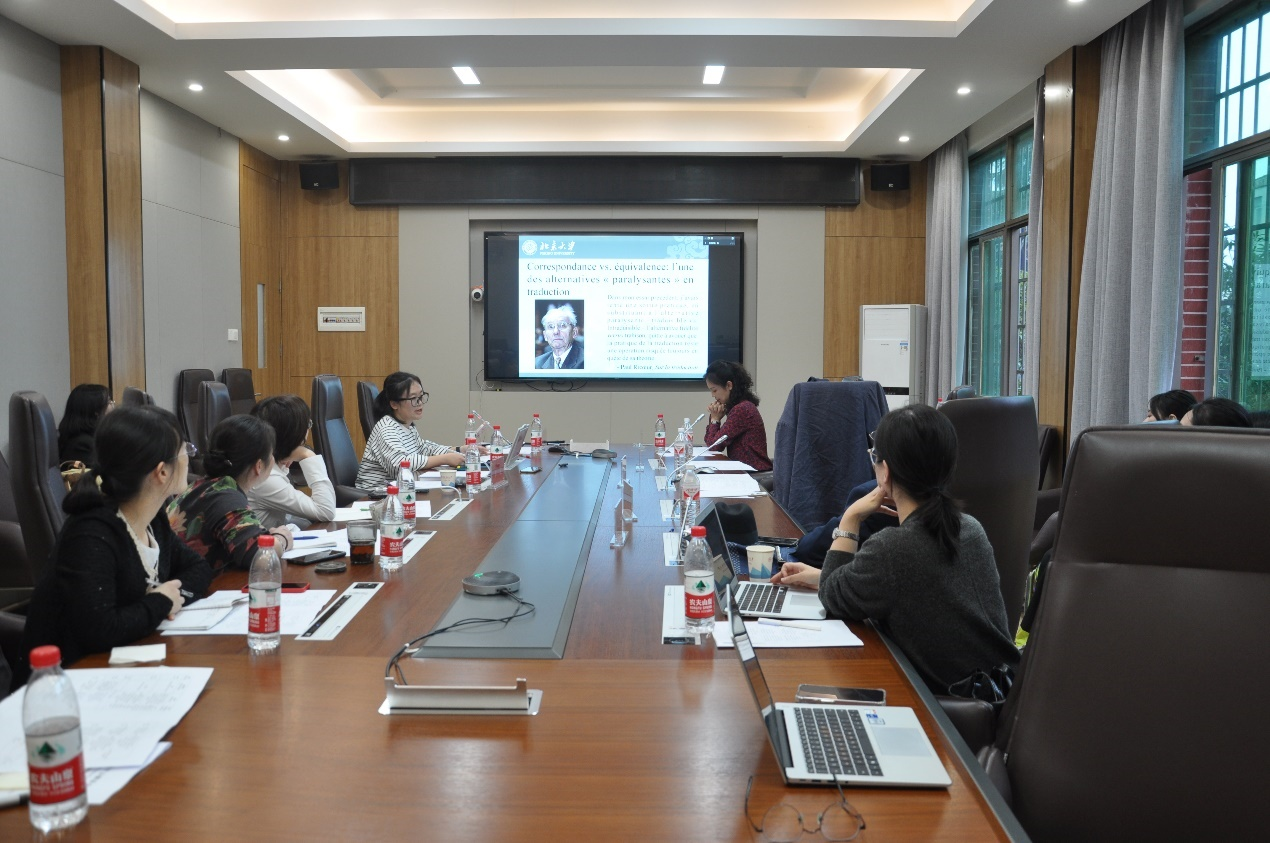 北京大学永利集团3044欢迎光临法语系章文副教授向大家作《迈向翻译的第三条径路:释意学派视域下的对等与对应》(Pour une troisième voie en traduction : correspondances et équivalences dans le cadre de la théorie interprétative de la traduction)的主旨报告。她解释了在释意学派的视域下,“对应”和“对等”是什么;除这两者以外,是否存在第三条径路;第三条径路是否可行。