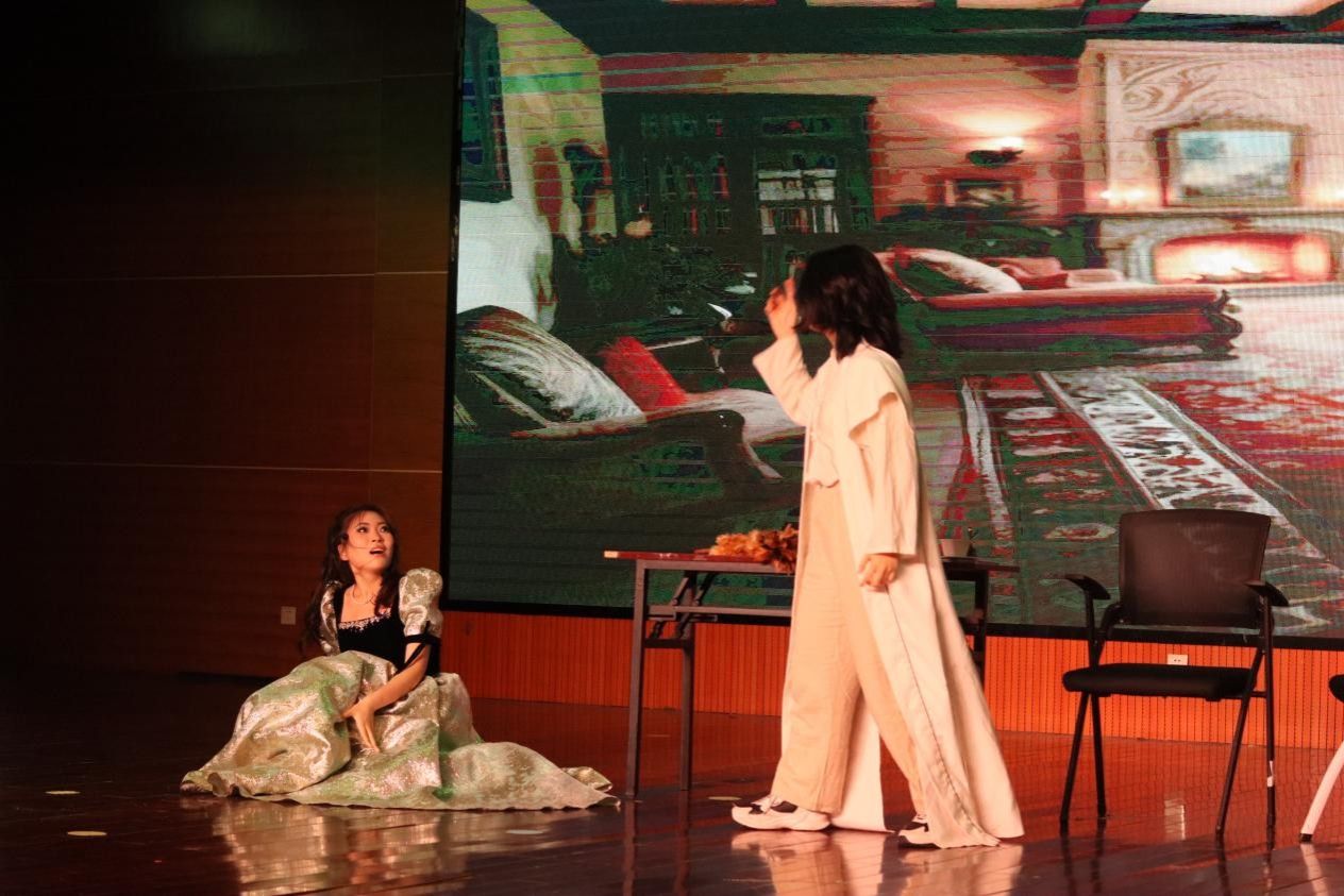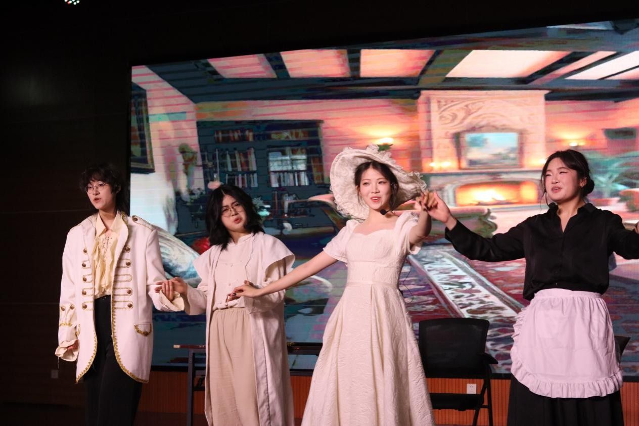 随后,演出在欢快的舞蹈Call me maybe(《给我电话哦》)中拉开帷幕,动感的节奏点燃了现场气氛。紧接着,法语歌曲Ça ira(《都会好》)以优美的旋律和深情的演唱赢得了阵阵掌声。压轴登场的是莫里哀的经典舞台剧Le malade imaginaire《无病呻吟》,将通俗易懂的17世纪法语与现代歌曲音乐相融合,生动再现了这部法国喜剧巨作的魅力,将现场氛围推向高潮。