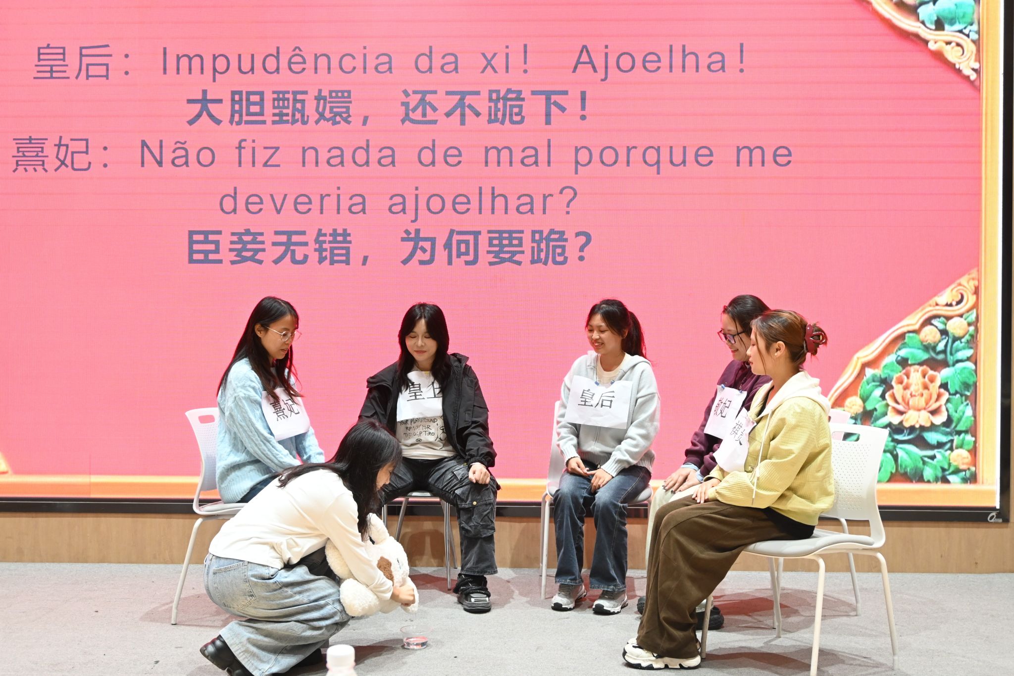 闭幕式节目精彩纷呈,由23级与24级西葡语专业学生联袂呈现。开场的西语合唱《Un año》以温暖动人的旋律拉开帷幕,唱出了青年人在时光流转中的陪伴与坚韧;随后,23级葡语班带来的葡语短剧《甄嬛传》以经典故事与葡语表达的巧妙融合,引发现场阵阵笑声;紧接着,24级西语班的诗朗诵《Oda al aire》以诗意的语言、清澈的情感,为观众展现了西语文学的细腻之美。