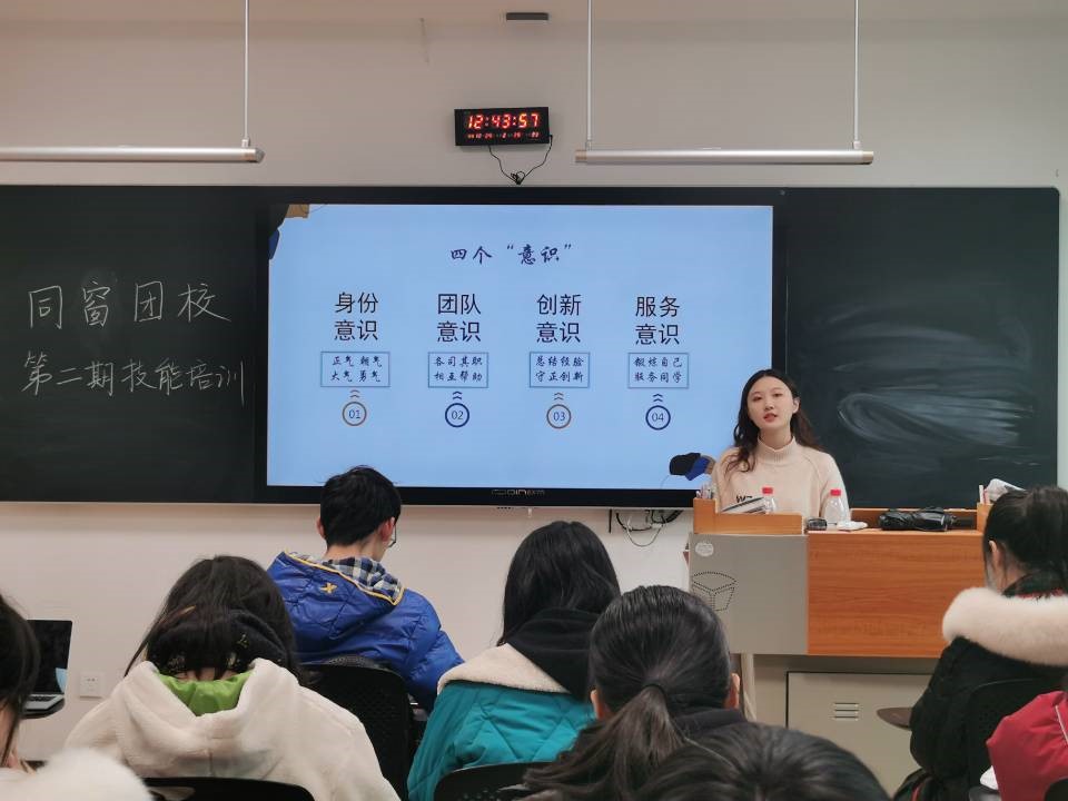 刘伊宁在培训中对本学期基层团干的工作进行了总结和反馈,详细讲解了基层团干的基本职责和基层团支部建设的方法,对基层团干在工作中遇到的问题进行了解答,同时进行了下学期的工作预告,最后介绍了党员发展历程和团支部推优入党程序。