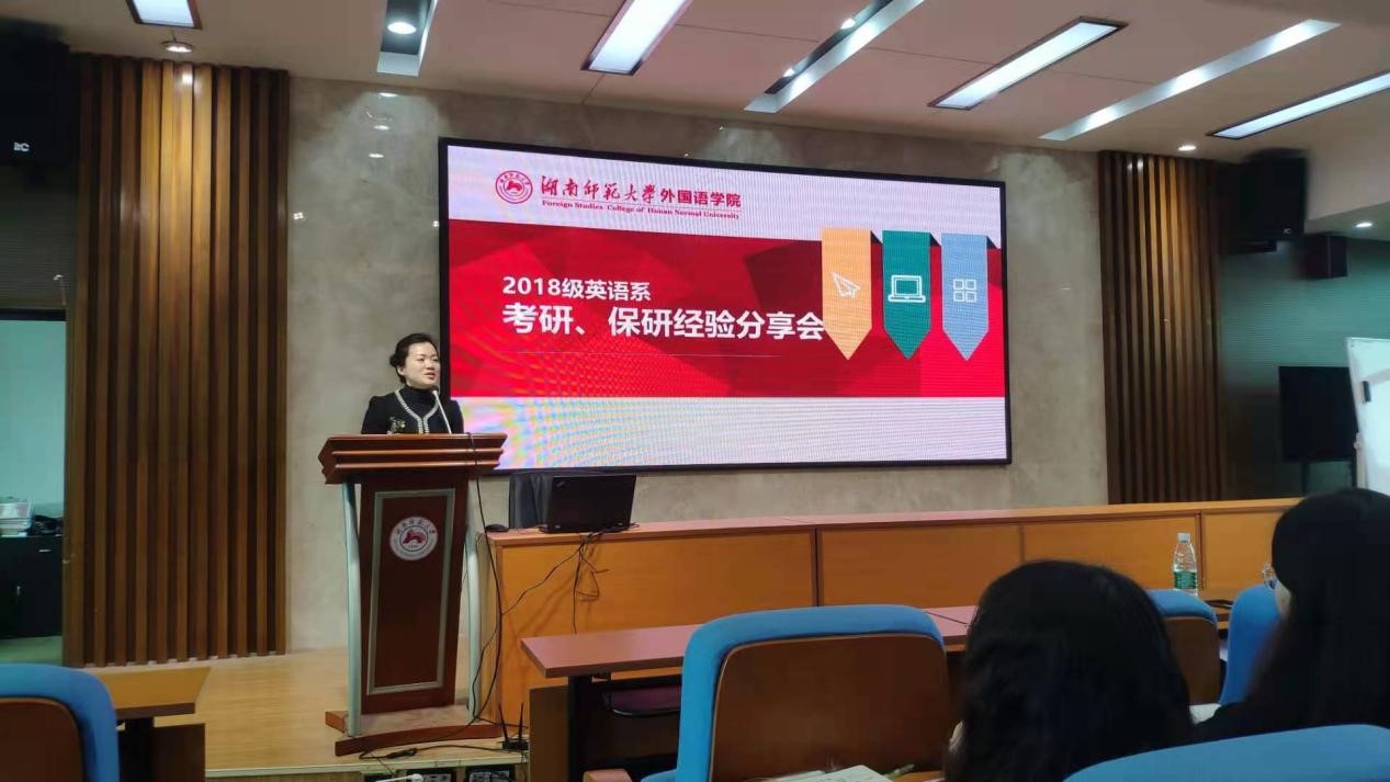 (通讯员 黄丽娟)4月12日中午,永利集团官网于腾龙楼515报告厅举行2018级英语系保研、考研经验分享会。英语系教授刘白出席此次大会,2017级优秀学生代表刘若琪、朱汁彬担任主讲人。